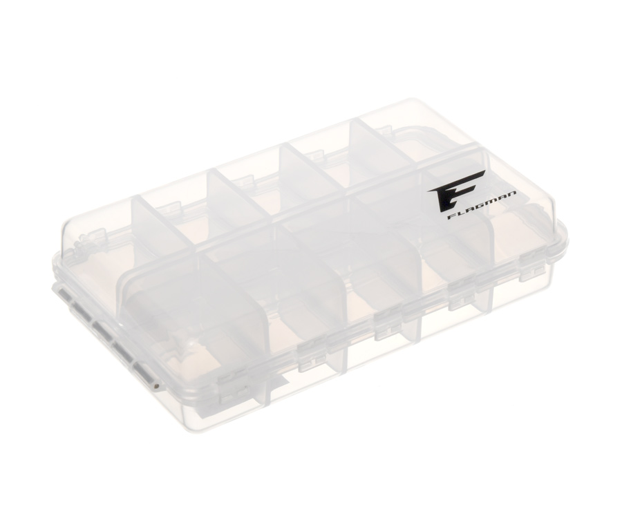 Flagman Tackle Box # 1 – компактна риболовна коробка, яку виготовлено з міцного пластику. Стійка до впливу матеріалу м'яких пластикових приманок. Підійде для зберігання вертлюжків, застібок, гачків, невеликих приманок і т.і. Її легко розмістити в кишенях риболовного жилета або куртки. Обтічна форма підвищує зручність експлуатації. Коробка Flagman Tackle Box # 1 має три поверхні, які оснащено невеликими відсіками з прозорими кришками. Сім відсіків обладнано «персональними» кришками, а шість – загальною. Має вушко для кріплення. Закривається на надійний фіксатор. Розміри Tackle Box # 1 в складеному вигляді: 100х65х35 мм.