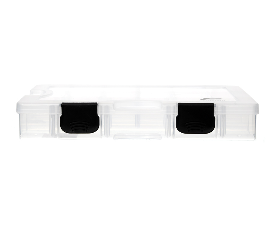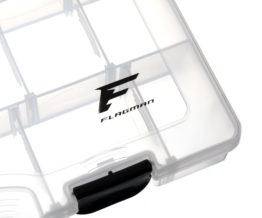 Flagman Tackle Box #18 – містка одностороння коробка, яку виготовлено з прозорого ударостійкого пластику. Завдяки системі знімних перегородок відмінно підійде для зберігання і транспортування приманок різноманітних типів і розмірів, а також джиг-головок, елементів оснастки та інших аксесуарів. Кришка рибальської коробки Flagman Tackle Box #18 закривається на дві міцні надійні защібки. Розміри: 27,5x18x4,5 см.
