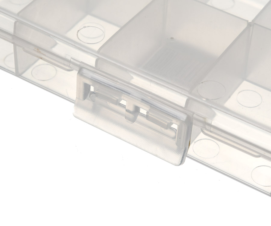 Flagman Tackle Box #25 – компактна одностороння коробка, яку виготовлено з прозорого ударостійкого пластику. Має незнімні перегородки, чудово підійде для зберігання і транспортування приманок різноманітних типів і підходящих розмірів, а також джиг-головок, елементів оснастки та інших аксесуарів. Кришка рибальської коробки Flagman Tackle Box #25 закривається на міцну надійну защібку. Розміри: 19x10x4 см.