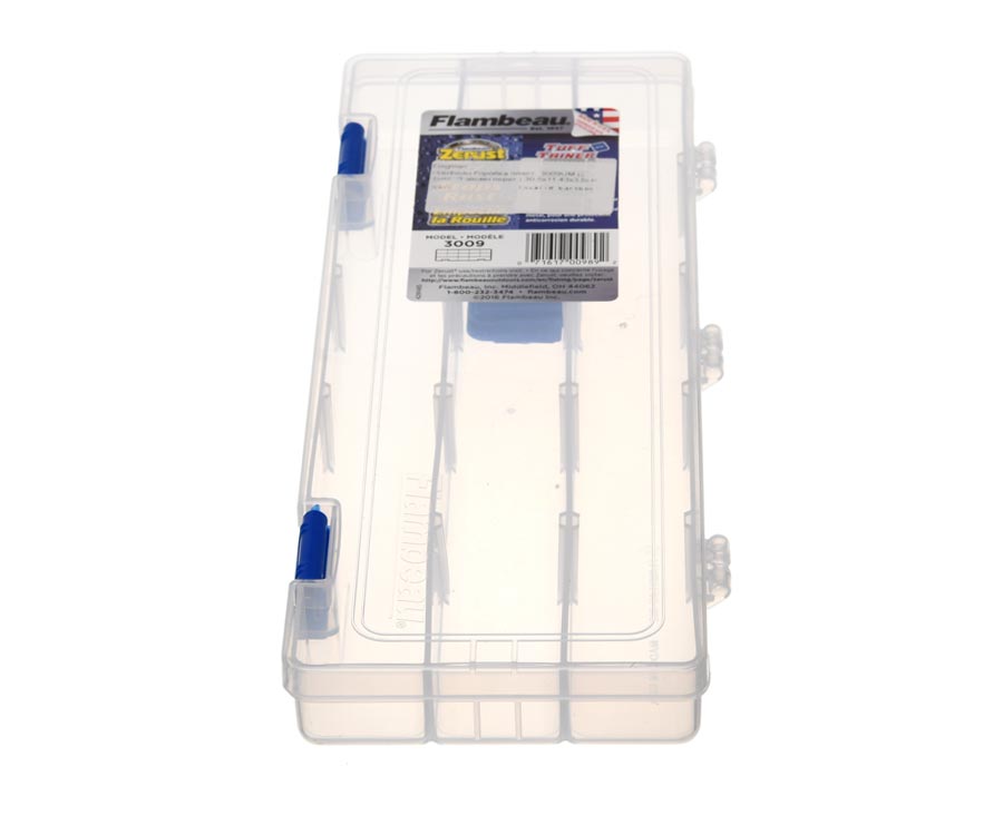 Риболовну коробку Flambeau Tuff Tainer Umbrella Rig Storage Box створено для зберігання приманок та аксесуарів. Коробку Flambeau 3009UM виготовлено з високоміцного прозорого пластику, а для виготовлення перегородок Tuff Tainers виробник використовує технологію із застосуванням полімеру Zerust, що дає змогу уникнути утворення корозії та іржі на будь-яких металевих деталях. Внутрішній простір можна розділити на 13 відділень за допомогою 9 знімних перегородок, що забезпечить раціональне розміщення вмісту вашої коробки.