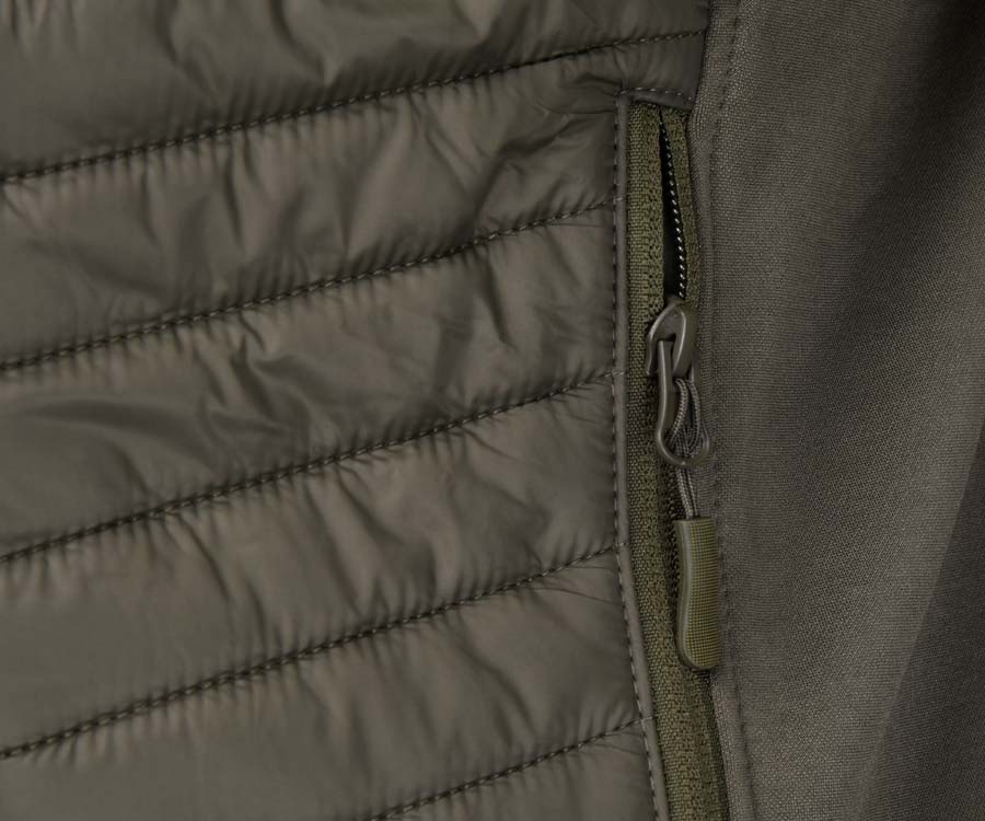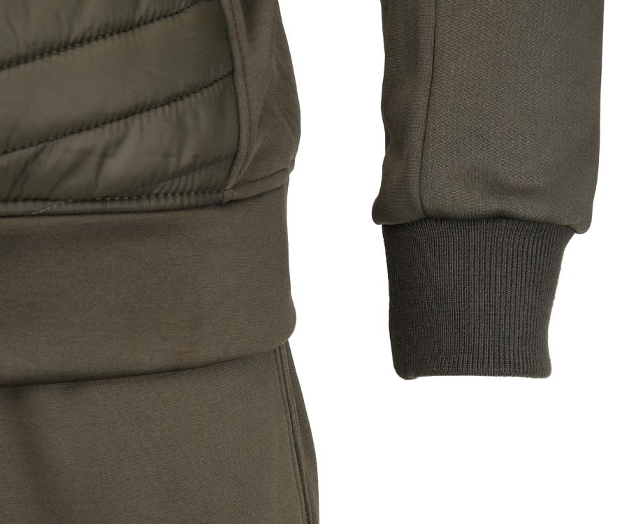 Костюм Carp Pro Combo Warm Suit – стильний, легкий, практичний і зручний костюм, який ідеально підійде для риболовлі, кемпінгу, активного відпочинку на природі та повсякденного носіння. Костюм виготовлено з комбінованої тканини: гладенького, зносостійкого і стильного на вигляд нейлону із зовнішнього боку та м’якого і приємного на дотик флісу – з внутрішнього, завдяки чому утворюється теплозберігаючий шар, а сам костюм є дуже комфортним у носінні. Спинка й полочка (передня частина) куртки додатково оздоблені утеплюючим шаром, що являє собою «сендвіч»: верх – тонкий нейлон з DWR просоченням, який захищає від вітру і вологи, а під ним тонкий шар утеплювача Hollowsoft 80. У такий спосіб вийшла доволі тепла та дихаюча конструкція, яка дає змогу не тільки відчувати себе комфортно в прохолодну погоду, але й не зіпріти під час активних рухів. Костюм Carp Pro Combo Warm Suit складається з куртки та штанів. Манжети та низ куртки мають еластичний дов’яз. Куртка застібається на замок-блискавку. У куртці передбачено внутрішню кишеню для документів і цінних речей. Її бічні кишені застібаються на блискавки, у них можна зігріти змерзлі руки, а глибокий капюшон з утяжкою надійно захистить від холодного вітру. Куртка і штани мають оздоблення фірмовим логотипом Carp Pro, виготовленим зі шкіри. У штанях передбачено дві бічні кишені на блискавках. Пояс і низ штанин – з еластичним дов’язом. Крім того, у поясі передбачено утяжку на шнурку. Такий костюм сподобається всім, хто цінує стильний вигляд разом із практичністю та комфортом. Склад Carp Pro Combo Warm Suit: нейлон, фліс, утеплювач Hollowsoft 80.