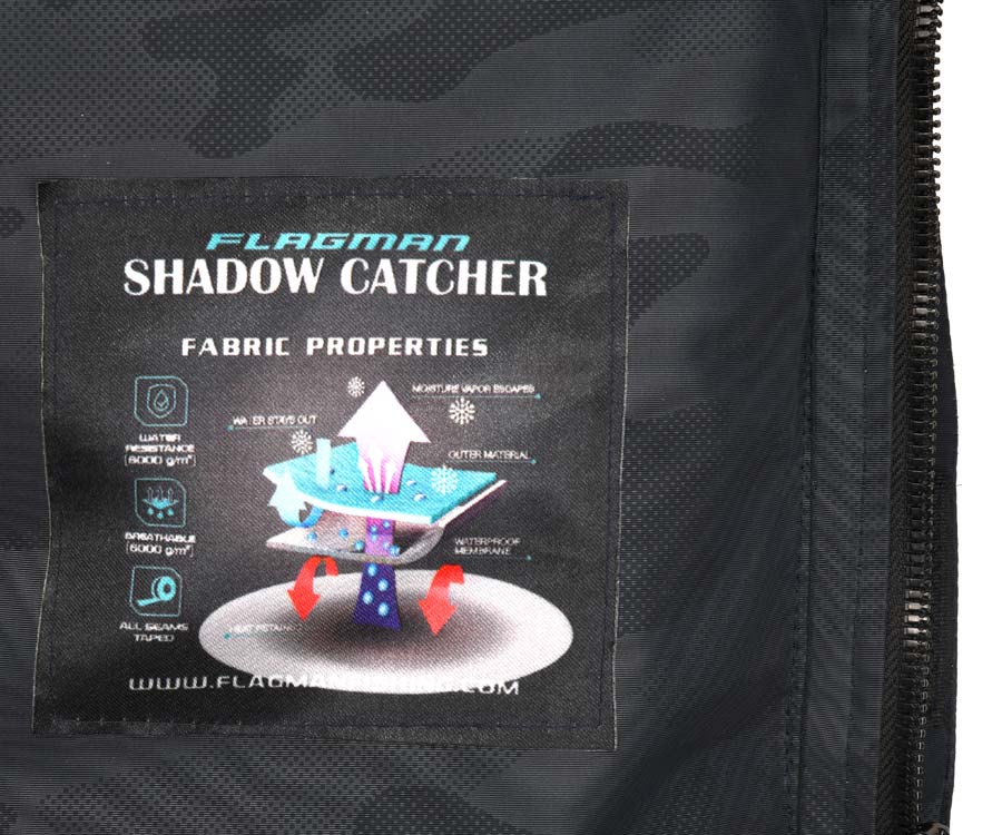 Flagman Shadow Catcher New Generation Navy Camo – демісезонний утеплений волого- і вітрозахисний мембранний костюм нової генерації. Поєднує в собі технологічність сучасних матеріалів, високий комфорт і практичність. Має просторий крій. Його спеціально розроблено для активного відпочинку, риболовлі й туризму в мінливих погодних умовах міжсезоння. Верхній шар виконано з новітньої мембранної тканини F-Tex, що забезпечує високу водонепроникність костюма навіть у зливу – 15000 мм водяного стовпа. Водночас «дихаюча» здатність мембрани складає 10000 г/м² за 24 години. Посилення активних зон виконано з матеріалу Oxford 200D із високою стійкістю до стирання і розривних навантажень. Внутрішній шар костюма Flagman Shadow Catcher New Generation – віскозна підкладка, що має високу паропроникність. Усі блискавки на костюмі прогумовано й додатково проклеєно герметичною мембранною стрічкою. Усі шви також проклеєно. Комплектується сумкою-чохлом для зручності транспортування і зберігання. Температурний режим: від +15 до -5°С.