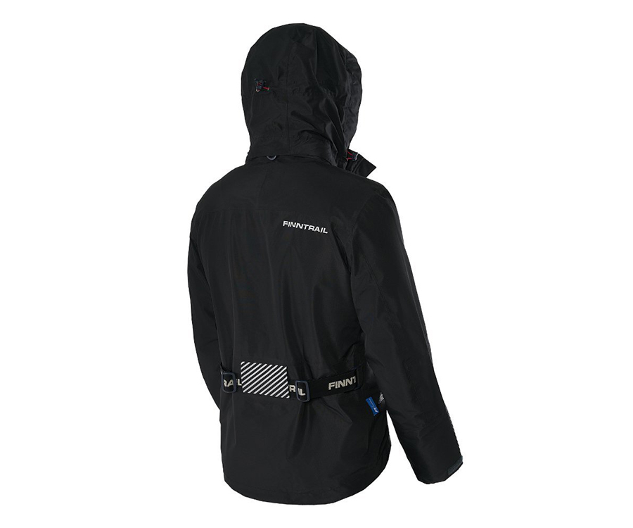Finntrail Suit Thor Graphite - універсальний костюм з мембранної тканини «HARD-TEX». Куртка має капюшон, відстібається та регулюється за обсягом в двох площинах, дві внутрішні кишені з вологозахисними блискавками і дві зовнішні нагрудні кишені з вологозахисною тракторною блискавкою, стійкою до потрапляння бруду. Центральна двозамкова вологозахист тракторна блискавка, стійка до бруду і захищена клапаном з магнітною системою застібки. Куртка має комфортний флісовий воріт. Рукава забезпечені манжетами з прогумованого матеріалу, що перешкоджають затікання води в рукави. Куртка оснащена кулісою внизу для підгонки по фігурі, страхувальними кільцями для кріплення чеки, світловідбиваючими елементами для забезпечення безпеки в темний час доби. Штани мають дві великі накладні кишені та регулювання об’єму по низу брюк. Коліна мають 3D форму і не обмежують рухи. Штани оснащені високою теплою спинкою з підтяжками, що регулюються по довжині. Всі шви і блискавки костюма проклеєні.