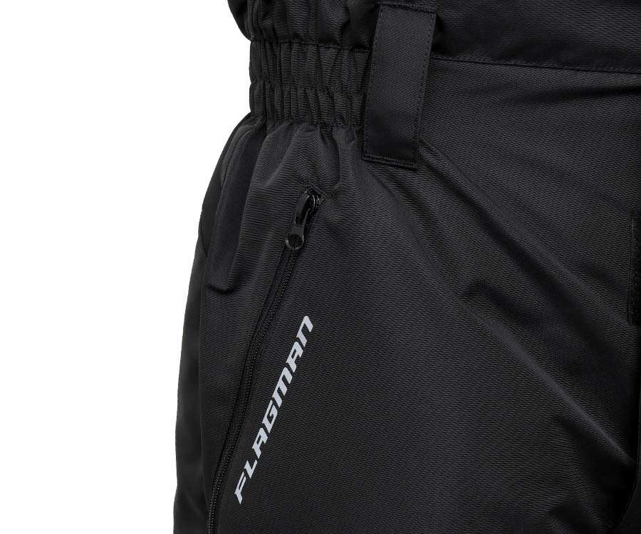 Flagman Hot Armour Winter Suit - теплий мембранний костюм, призначений для зимової риболовлі. Складається з куртки і напівкомбінезона, зовнішній шар яких виконаний з водонепроникного мембранного матеріалу Hi Pora. За збереження тепла в костюмі відповідає утеплювач Hollowsoft. Також костюм посилений накладками підвищеної міцності Oxford 180, які захищають Hot Armour Winter Suit від протирання в районі колін, сідниці і внутрішньої частини штанин. Внутрішня підкладка з м'якого мікрофлісу прекрасно зберігає тепло тіла, при цьому абсолютно не перешкоджаючи випаровуванню вологи що утворилася. Всі шви костюма герметично проклеєні.Підклад куртки зонований - поличка і спинка закриті легким мікрофлісом, а поділ виконаний з віскозної підкладки, яка виключає скупчення снігу і льоду на його внутрішній стороні. Куртка оснащена чотирма зовнішніми кишенями, утепленими флісовою підкладкою: верхні - врізні кишені, нижні - накладні з клапанами на липучках, які мають два відсіки. Внутрішня нагрудна кишеня - на блискавці. Куртка застібається на блискавку з подвійним зіпером, яку від дощу і снігу захищає подвійний клапан на липучці і кнопках. Внутрішній манжет рукавів виконаний з м'якого і теплого дов'язу, який виключає попадання снігу в рукава, а зовнішній манжет забезпечений утяжкою на липучці, що дозволяє відрегулювати і затягнути манжет по зап'ястку або рукавичці. Також передбачені: зручний високий комір, що відстібається, глибокий капюшон, що регулюється по висоті і об'єму, а також фіксують утяжки поясу і подолу куртки.Комбінезон оснащений високою спинкою і має дві бічні кишені, що закриваються на водонепроникні блискавки. Для щільної фіксації комбінезона на тілі в районі пояса вшита еластична резинка, також передбачені шлевки для ременя. Центральна блискавка комбінезона забезпечена подвійним зіпером і захисним клапаном. Еластичні підтяжки легко регулюються по висоті. Як і у всіх костюмах Флагман в колошах встановлена щільна снігозахисна спідниця. Коліна, сідниці і внутрішня частина штанин посилені додатковими накладками. На колінах передбачена кишеня для розміщення додаткових м'яких захисних щитків, які можна вставити або зняти на розсуд рибалки. Брючини від коліна до краю оснащені блискавкою - вона дозволяє збільшити діаметр штанин і натягнути штани практично на будь-який чобіт. Блискавки прикриті захисними клапанами.Характеристики костюма Flagman Hot Armour Winter Suit:- Легкий, теплий, практичний костюм для зимової риболовлі з температурним режимом до -20 ° С- Яскраві кольори куртки і світловідбиваючими елементи для кращої ідентифікації рибалки на льоду- Зовнішній шар з високоякісної мембранної тканини.- Водонепроникність: 8000 мм водяного стовпа- Дихаюча здатність: 3000 г / м² за 24 години- Утеплювач не втрачає форму.