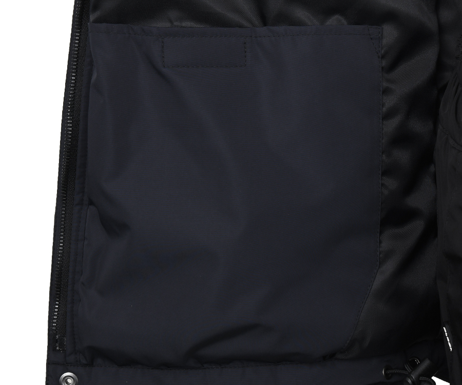 У куртці є 2 просторі утеплені бічні кишені на водонепроникних блискавках + 1 невеличка кишеня на лівому рукаві, а також 3 внутрішні кишені: грудна на блискавці і 2 нижні на липучці. Краї рукавів з утяжками на липучці та внутрішніми еластичними манжетами. Передбачено регулювання капюшона на липучці в потиличній частині та гумові затяжки-фіксатори з боків, а також зручна затяжка низу куртки. Штани мають 2 внутрішні кишені на блискавках і 2 накладних кишені з клапанами на липучці, низ штанин – на блискавці, з фіксаторами на липучці і внутрішніми манжетами на резинці. Також передбачено зручні регульовані підтяжки, високу спинку, поясні утяжки, широкі лямки під поясний ремінь. Штани костюма Shadow Catcher New Generation Dark Navy – чорного кольору, куртка – Dark Navy.