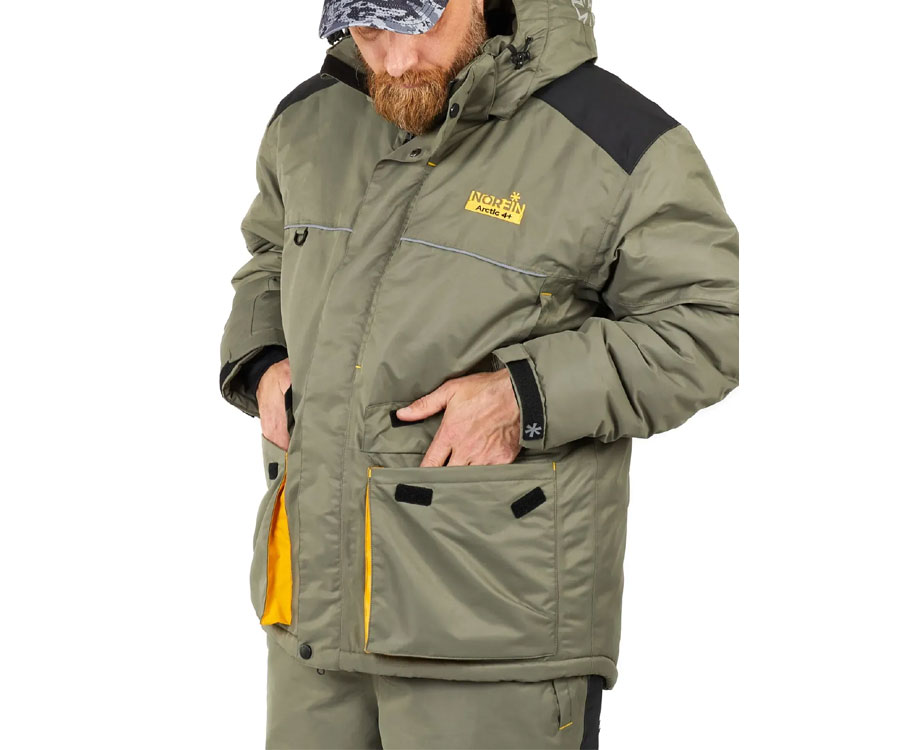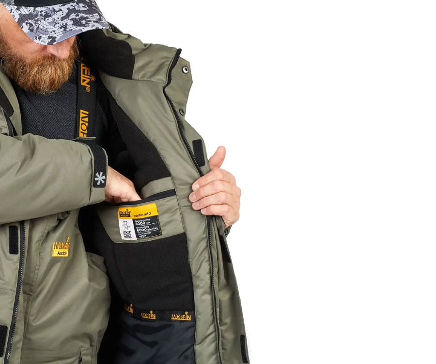 Найтепліший костюм в лінійці Norfin. Експлуатація до температури -45ᵒC. Мембранна тканина. Проклеєні шви. Утеплювач – Thermo Guard. Функціональний, ергономічний костюм. Сумка для перенесення та зберігання. Куртка: Двозамкова застібка-блискавка з клапаном на «липучці». Дворівневе регулювання капюшона. Регулювання об'єму талії і подолу куртки. Дві кишені для зігрівання рук. Нагрудна кишеня на блискавці. Дві накладні кишені з клапанами. Манжети на рукавах: внутрішні еластичні, зовнішні – регульовані. Світловідбиваючі елементи безпеки. Пластикове кільце. Напівкомбінезон: Регульовані по довжині лямки із замками. Двозамкова застібка-блискавка з клапаном. Зручні бічні кишені. Застібка-блискавка знизу штанів з клапаном. Посилений матеріал в області колін і сідниць. Шлевки під ремінь. Світловідбиваючі елементи безпеки. Матеріал: Nortex Breathable. Водонепроникність: 8 000 мм. «Дихаюча» здатність матеріалу: 6 000 г/м²/24 год. Утеплювач: Thermo Guard.