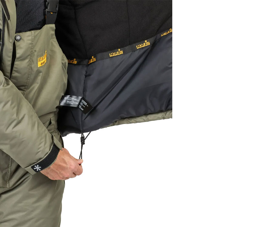 Найтепліший костюм в лінійці Norfin. Експлуатація до температури -45ᵒC. Мембранна тканина. Проклеєні шви. Утеплювач – Thermo Guard. Функціональний, ергономічний костюм. Сумка для перенесення та зберігання. Куртка: Двозамкова застібка-блискавка з клапаном на «липучці». Дворівневе регулювання капюшона. Регулювання об'єму талії і подолу куртки. Дві кишені для зігрівання рук. Нагрудна кишеня на блискавці. Дві накладні кишені з клапанами. Манжети на рукавах: внутрішні еластичні, зовнішні – регульовані. Світловідбиваючі елементи безпеки. Пластикове кільце. Напівкомбінезон: Регульовані по довжині лямки із замками. Двозамкова застібка-блискавка з клапаном. Зручні бічні кишені. Застібка-блискавка знизу штанів з клапаном. Посилений матеріал в області колін і сідниць. Шлевки під ремінь. Світловідбиваючі елементи безпеки. Матеріал: Nortex Breathable. Водонепроникність: 8 000 мм. «Дихаюча» здатність матеріалу: 6 000 г/м²/24 год. Утеплювач: Thermo Guard.