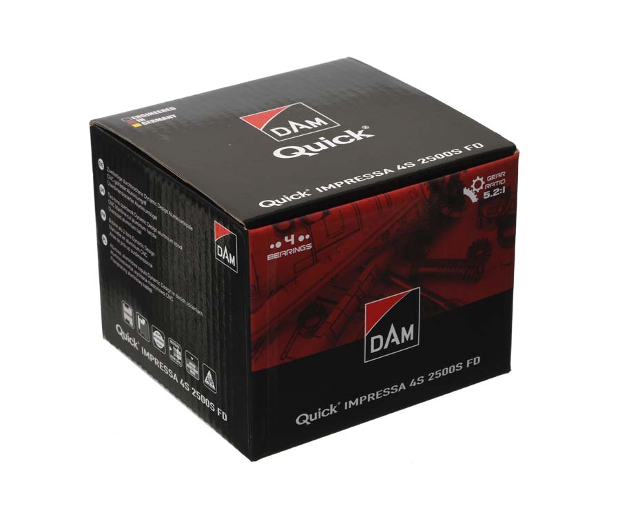 DAM Quick Impressa 4S FD – серія якісних тягових котушок від відомого виробника для широкого кола риболовів. Завдяки ексклюзивному косметичному дизайну і двоколірній анодованій алюмінієвій шпулі Impressa 4S FD є однією з найкрасивіших безінерційних котушок у лінійці Quick. Полегшені корпус і ротор виготовлено з графіту. Надійне алюмінієве руків'я вироблено на верстаті із ЧПУ, а вхопистий кноб має нову конструкцію з термопластичного еластоміру і привабливий зовнішній вигляд. Котушки підходять для різноманітних способів риболовлі: поплавцевої, фідерної, спінінгової ловлі.