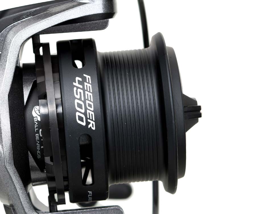 Flagman Legend Feeder FD – довгоочікувана новинка, оновлена серія легендарних фідерних котушок, що так полюбилися нашим риболовам. Традиційно надійність та високі тягові характеристики котушок Flagman Legend Feeder поєднано з доступною ціною для широкого кола риболовів. Їхні корпус і ротор виготовлено з високоміцного пластику, потужна головна пара та кулькові підшипники, які встановлено в найбільш навантажених точках, забезпечують значний ресурс. Ідеально рівне укладання жилки забезпечує вдосконалений механізм з «нескінченним гвинтом», а стійкий до стирання ролик укладача жилки системи Anti-Twist запобігає її перекручуванню. Міцний корпус та силовий механізм дають змогу без проблем працювати з важкими годівницями та виважувати велику рибу. Місткість полегшеної алюмінієвої шпулі Flagman Legend Feeder FD є оптимальною для роботи з тонкими жилками та шнурами. Шпулю оснащено круглою металевою кліпсою, яка забезпечує надійне та безпечне кліпсування жилки або шнура. Конічний буртик шпулі значно зменшує тертя та підвищує дальність закидання. Передній фрикціон має точне плавне регулювання та вирізняється стабільною роботою. Алюмінієва ручка має Т-подібний обгумований кноб, який гарантує надійне і впевнене утримання під час роботи з котушкою. Оновлені котушки Flagman Legend Feeder FD ідеально підійдуть для риболовлі у важких умовах на течії, а також для ловлі коропа та іншої великої риби на комерційних водоймах.