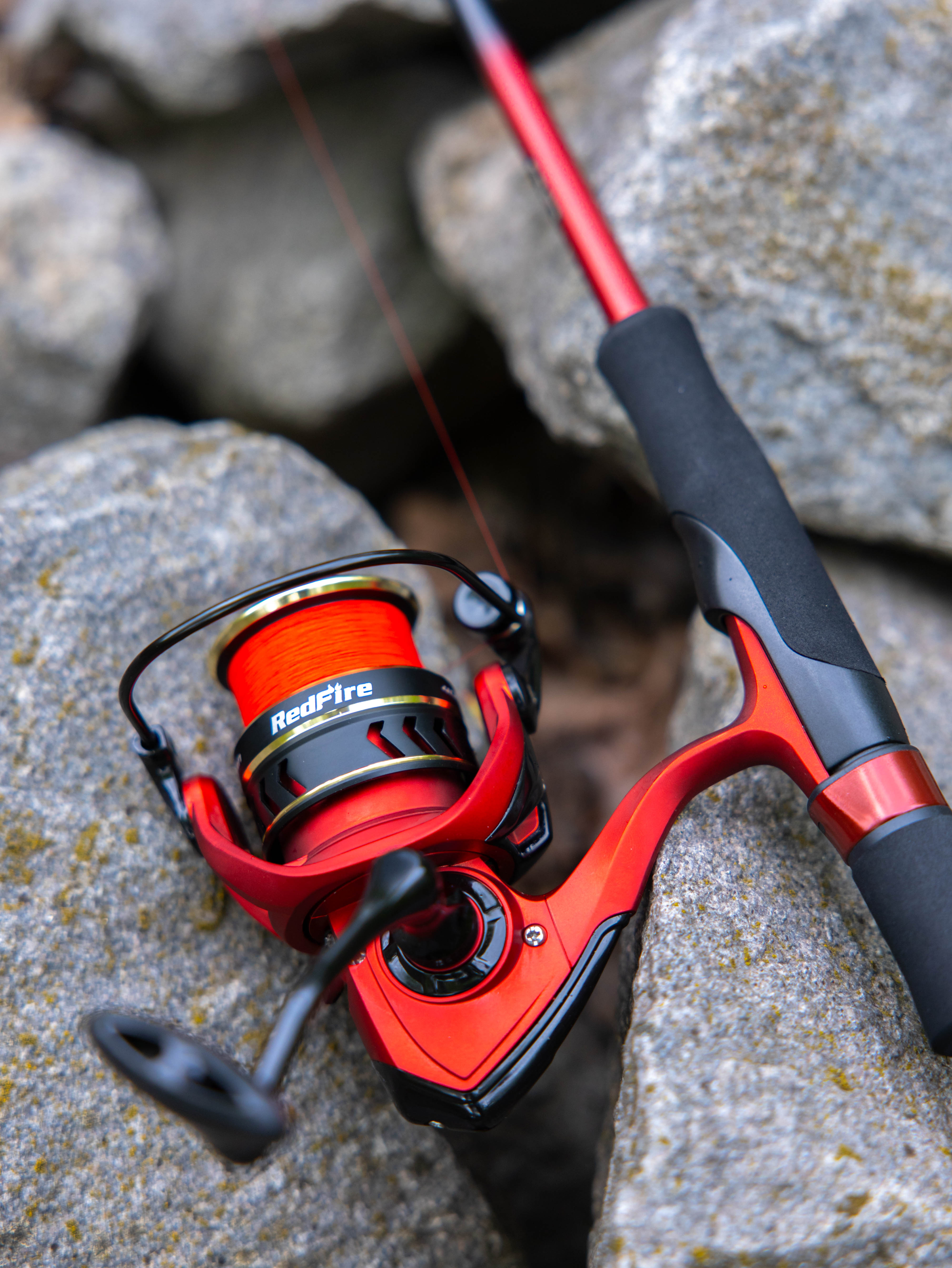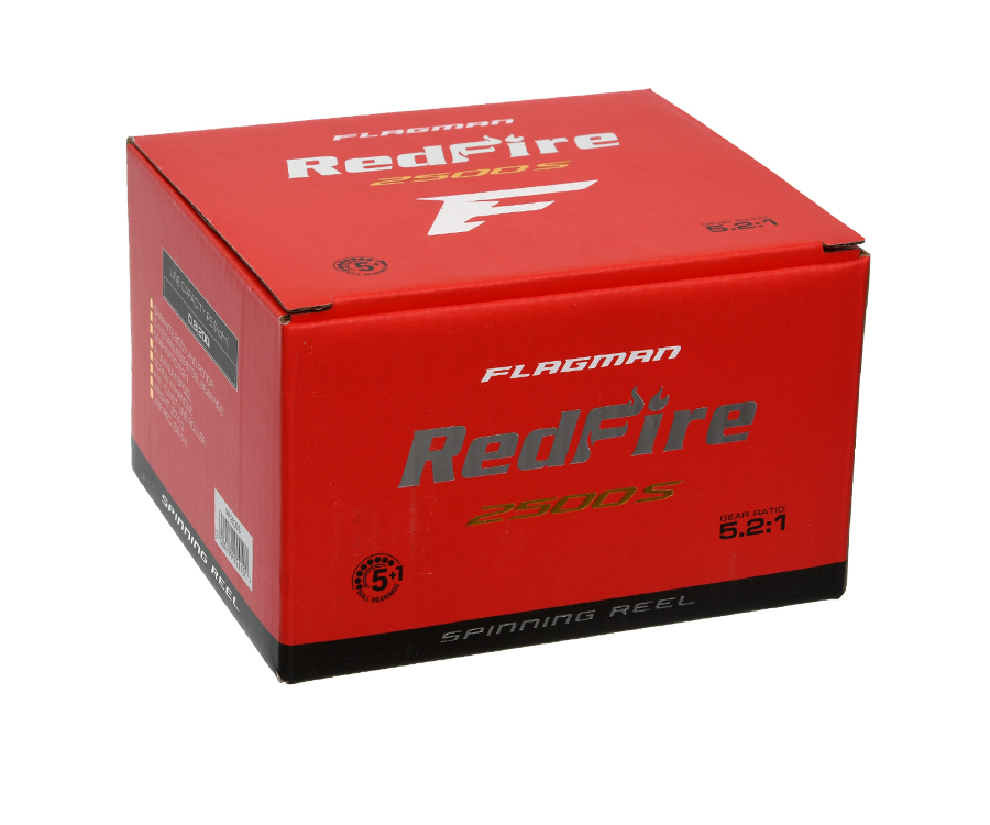 Flagman RedFire – новинка сезону, серія універсальних спінінгових котушок для широкого кола риболовів, що вирізняються стильним дизайном і чудовими технічними характеристиками. У прекрасно збалансованому механізмі, розміщеному в жорсткому графітовому корпусі, використано 5 кулькових і 1 роликовий підшипник із нержавіючої сталі, завдяки чому котушка Flagman RedFire має плавний хід і гарні тягові характеристики. Усі котушки серії оснащені низькопрофільними алюмінієвими шпулями з конічним буртиком, мають ролик жилковкладача із системою Anti-Twist та оптимізовані під використання сучасних шнурів і жилок. Вдосконалений кулісний механізм забезпечує якісне укладання жилки, що підвищує дальність і точність закидань. На окрему увагу заслуговує система Screw-in-handle, за якої алюмінієва ручка котушки вкручується безпосередньо в головну шестерню. Це позитивно позначається на відчутті збитості механізму та загальній надійності. Кноб добре лягає в руку й має зручну форму. Плавне регулювання фрикціону дає змогу максимально точно встановити необхідне гальмівне зусилля. Серія котушок Flagman RedFire має чотири моделі в різних розмірах із яскравим дизайном. Якщо RedFire 2000S – це чудовий вибір для ловлі на легкі приманки, то модель RedFire 4000S впорається як із ривковими анімаціями воблерів big minnow, так і з джиговими приманками вагою до 40 г. RedFire – це котушки, які мають краще технічне оснащення та характеристики, ніж переважна більшість конкурентів у даній ціновій категорії, а їхній стильний дизайн одразу привертає увагу та підтверджує заслужене звання «Яскравий лідер сегмента».
