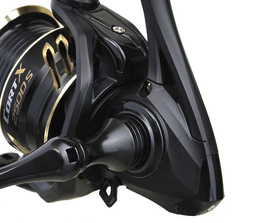 Flagman '23 Cort-X – оновлена серія спінінгових котушок Cort-X, які вирізняються сучасним дизайном і відмінними технічними характеристиками. Легкий і міцний графітовий корпус Flagman Cort-X вдало поєднується з полегшеною алюмінієвою шпулею, легким компактним ротором із графіту, який не має зайвої інерції, і напрочуд плавним і безшумним ходом механізму. Низькопрофільна алюмінієва шпуля зі зменшеною глибиною намотування та ролик укладача жилки із системою Anti-Twist дають можливість без обмежень використовувати як монофільні жилки, так і сучасні плетені шнури. Інноваційна конічна форма переднього буртика шпулі та вдосконалений кулісний механізм, що забезпечує якісне укладання жилки, значно підвищують дальність і точність закидання приманок. Серед безумовних переваг оновлених котушок Flagman '23 Cort-X – надійний механізм зі збільшеною провідною шестірнею, редукція 5,2:1, 7+1 високоякісних підшипників, моментальний антиреверс, ролик укладача жилки з надтвердим покриттям, надійна алюмінієва ручка з кнобом із EVA, а також фрикціон із високоточним регулюванням гальмівного зусилля та м'який матерчатий чохол.