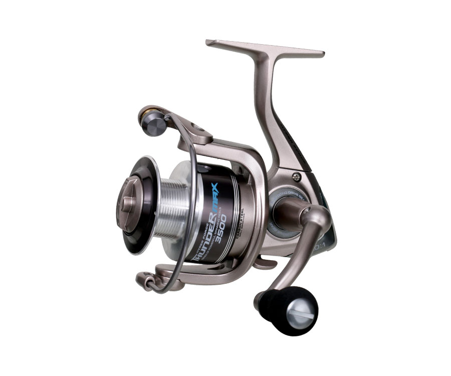 Спінінгові котушки Flagman Thunder MAX із полегшеним ротором виготовлено в елегантній сріблясто-чорній гамі. Легкий пластиковий корпус гармонійно поєднується з міцною алюмінієвою ручкою, компактним легким ротором, що не має зайвої інерції, плавним ходом і безшумною роботою механізму на якісних кулькових підшипниках. Точена алюмінієва шпуля та ролик укладача жилки з надтвердим напиленням і системою Anti-Twist забезпечують використання як жилок, так і плетених шнурів. Випускаються в розмірах: 2000, 3000, 3500. Мають шпулі стандартної концепції та передавальне число 5,0:1. Кноб має зручну грушоподібну форму та покритий EVA. У комплекті - м'який матерчатий чохол. Котушки не комплектуються додатковою шпулею, проте за своїми параметрами та ціною стануть чудовим вибором, доступним широкому колу риболовів.