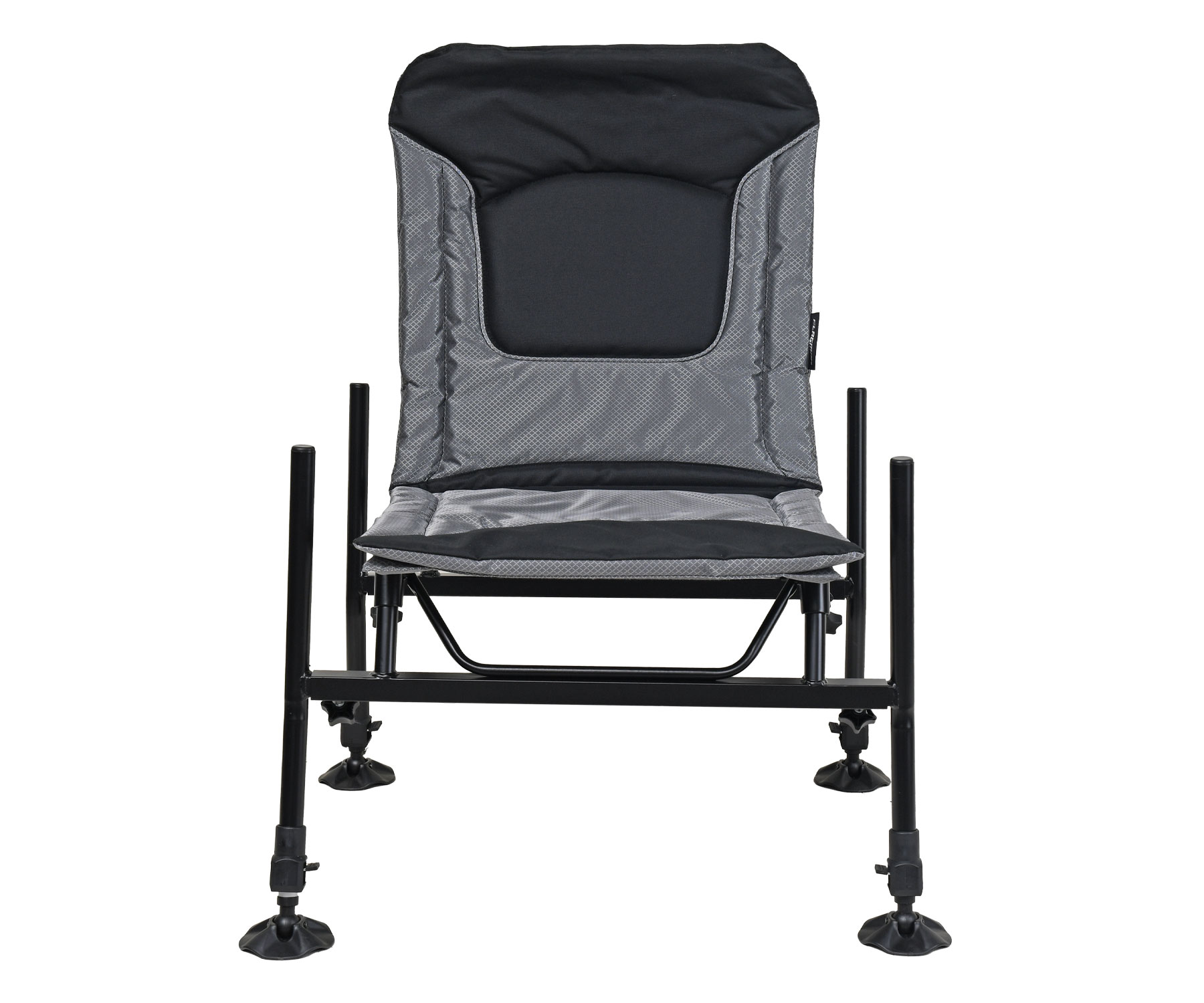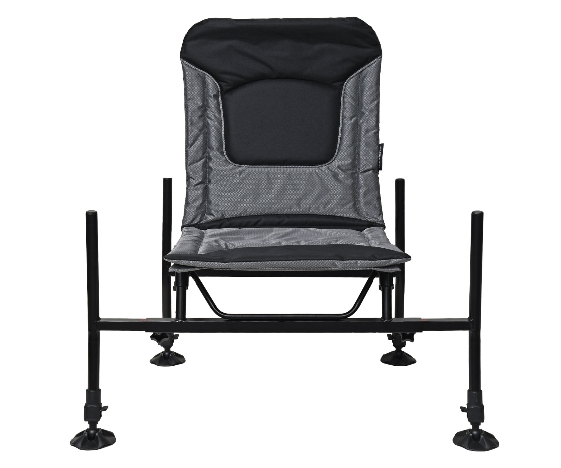 Flagman Pro Competition Feeder Chair legs 25 мм – легке розкладне риболовне крісло, що поєднує в собі переваги крісла і платформи та розроблене спеціально для риболовлі й відпочинку. Крісло Flagman Pro Competition Feeder Chair легко встановити на будь-якій поверхні з нерівним рельєфом за рахунок використання регульованих ніжок із широкими грязьовими п'ятами на шарнірах, які перешкоджають зануренню в м'який ґрунт. Ніжки крісла дають змогу застосовувати навісне обладнання з кріпленням 25 мм. Завдяки надійній і міцній рамі з легкого алюмінієвого сплаву крісло без проблем витримує навантаження до 120 кг, користуючись популярністю в риболовів через свою легкість і високий комфорт. Оздоблення спинки та сидіння виконано в унікальному забарвленні Pro Competition зі зносостійкого водовідштовхувального матеріалу. У процесі риболовлі ви можете вільно відкинутися на спинку, яка розташована під оптимальним нахилом, а завдяки ергономічним вставкам із м'якого пористого матеріалу в спинці та сидінні, тіло приймає максимально природне положення та не сповзатиме, що сприяє комфорту + довготривалій та невтомній ловлі. Крісло Flagman Pro Competition Feeder Chair стане відмінним вибором і надійним супутником для тих риболовів, які цінують високу якість і надійність свого рибальського спорядження.