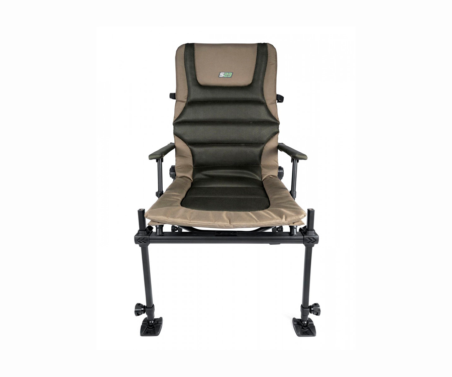 Крісло Korum Accessory Chair S23 Deluxe – оснащене новою системою підлокітників, що відкидаються. Підлокітник можна просто зрушити убік з одного або з обох сторін. Також крісло може похвалитися новими телескопічними ніжками для максимального регулювання.