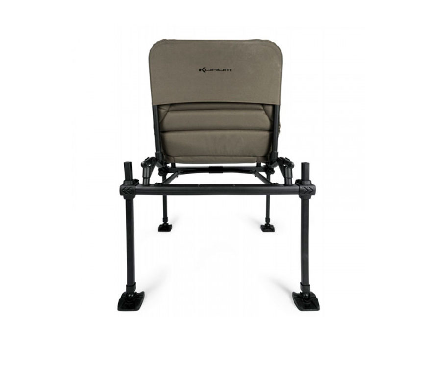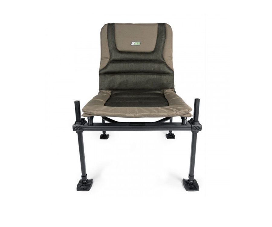 Крісло фідерне Korum Accessory Chair S23 Standard купити яке ви можете в нашому інтернет-магазині — ідейний послідовник знаменитого "Стандарту", того самого крісла, яке стало першим для багатьох фідеристів. А деякі використовують його за призначенням і до цього дня — дуже вже вдалим і функціональним воно вийшло! Від ідейного предка модель успадкувала доладну конструкцію. Ніжки знімати не треба, а тому процес монтажу займає лічені секунди. У складеному стані крісло практично не займає місця, а його вага не перевищує 6 кілограм. Головна відмінність новинки від попередників — "двадцять третя" нога, що істотно збільшує стійкість і монолітність конструкції. А ще вона робить доступною установку телескопічних ніжок від моделі Deluxe старого зразка. Оббивка Korum Accessory Chair S23 Standard виконана з щільної зносостійкої тканини, яка не боїться вологи і бруду і витримує усі тяготи експлуатації фідера. Регулювання спинки по нахилу немає, проте кут підібраний оптимальним чином і забезпечує зручну посадку риболова незалежно від його габаритів і статури.