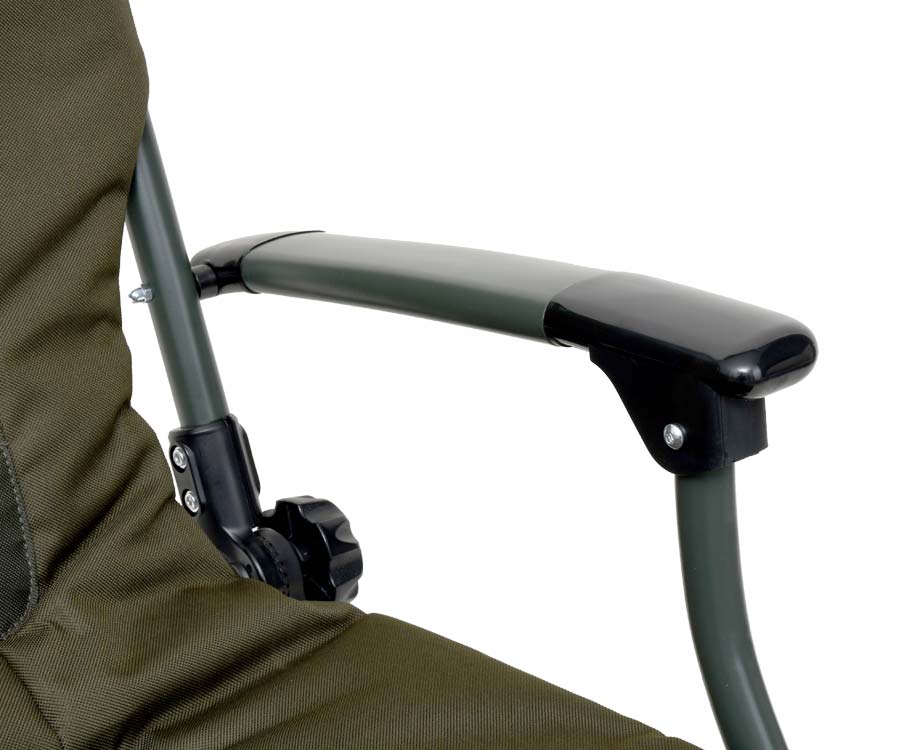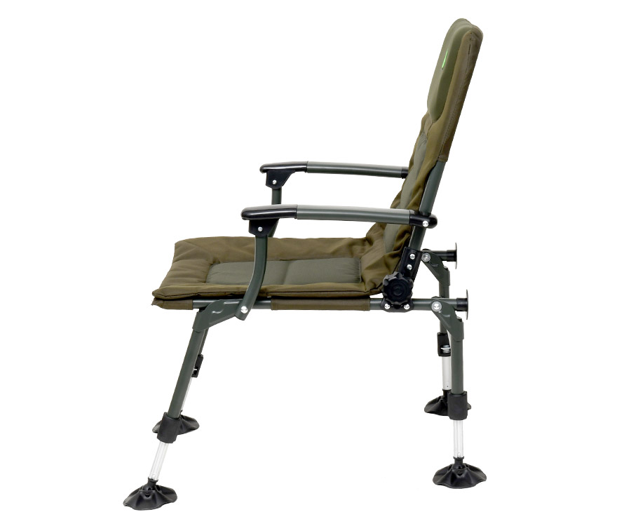 Carp Pro Torus – складане коропове крісло з підлокітниками, яке спеціально розроблено для ловлі коропа й гарантує риболову високий рівень комфорту. Внаслідок використання посиленої сталевої рами, крісло з легкістю витримує навантаження до 120 кг. Завдяки інтегрованому в спинку підголів’ю й м'яким вставкам на сидінні та спинці тіло приймає природне положення, що сприяє довготривалій і комфортній ловлі. Коропове крісло CP Torus швидко встановлюється, а кут нахилу спинки легко й просто регулюється в широких межах. Крісло можна без проблем розмістити на нерівній і похилій поверхні завдяки чотирьом телескопічним ніжкам з надійними й легкими у користуванні фіксаторами. Ніжки оснащено збільшеними шарнірними п'ятами, які не дають кріслу провалюватися у м'який ґрунт і забезпечують додаткову стійкість на похилій поверхні. У транспортному положенні крісло Carp Pro Torus компактне й зручне для перевезення.