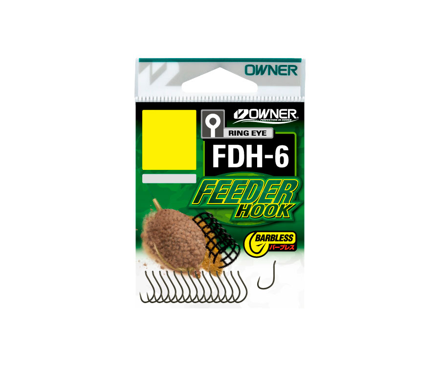 Owner Feeder Hook FDH-6 56946 – новітня серія потужних і міцних безбородих гачків, розроблених спеціально для фідерної ловлі великої та сильної риби. Їх виготовлено з мыцного високовуглецевого сталевого дроту. Гачки Owner FDH-6 мають широкий округлий класичний вигин, кований піддів, трохи загнуте до цівки надгостре жало, звичайних розмірів цівку з відігнутим назовні кільцем для прив'язування та захисне покриття Black Chrome. Owner 56946 ідеально підходять для використання в коропових монтажах, а також для фідерної, флет-фідерної та поплавцевої ловлі. Owner Feeder Hook FDH-6 – чудова модель для ловлі на об'ємні насадки як тваринного, так і рослинного походження. Дуже гостре жало зі спеціальним заточуванням Super Needle Point і відсутність борідки гарантують ефективне підсікання та надійне утримання трофея, з мінімальним нанесенням йому пошкоджень. Розмірний ряд гачків у серії – від №16 до №8.