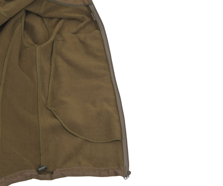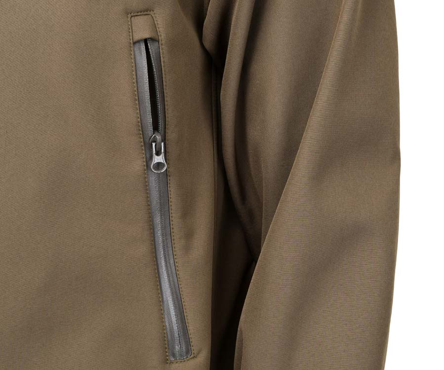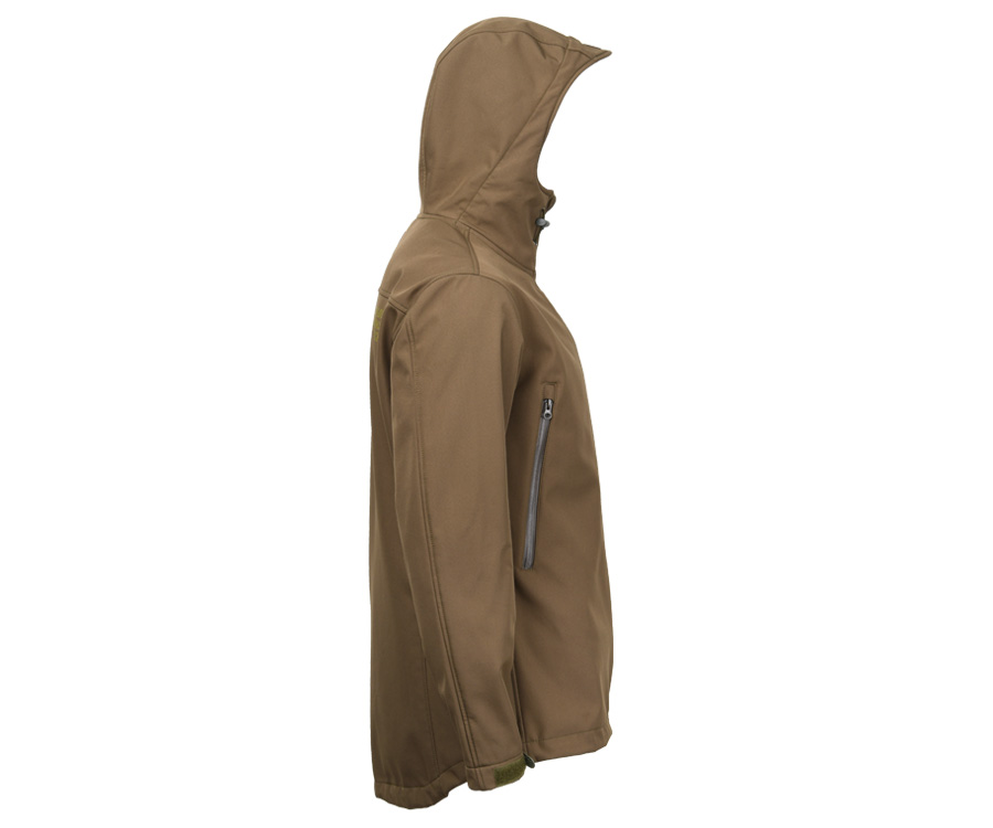 Carp Pro Soft Shall Jacket CP2526 – стильна чоловіча демісезонна куртка на блискавці, яку виготовлено з водонепроникної мембранної тканини Softshell з підкладкою. Незнімний регульований капюшон із козирком і високий комір забезпечують додатковий захист від вітру та негоди. У дизайні куртки Carp Pro Soft Shall Jacket передбачено дві зовнішні бічні кишені на водонепроникних блискавках. Для зручності утяжки капюшона виведено в кишені, що дає змогу швидко регулювати його прилягання, не виймаючи руки з кишень. Рукава посилено в районі ліктів, вони мають еластичні манжети та затяжки на липучці. Також передбачено регульовані утяжки для низу куртки.