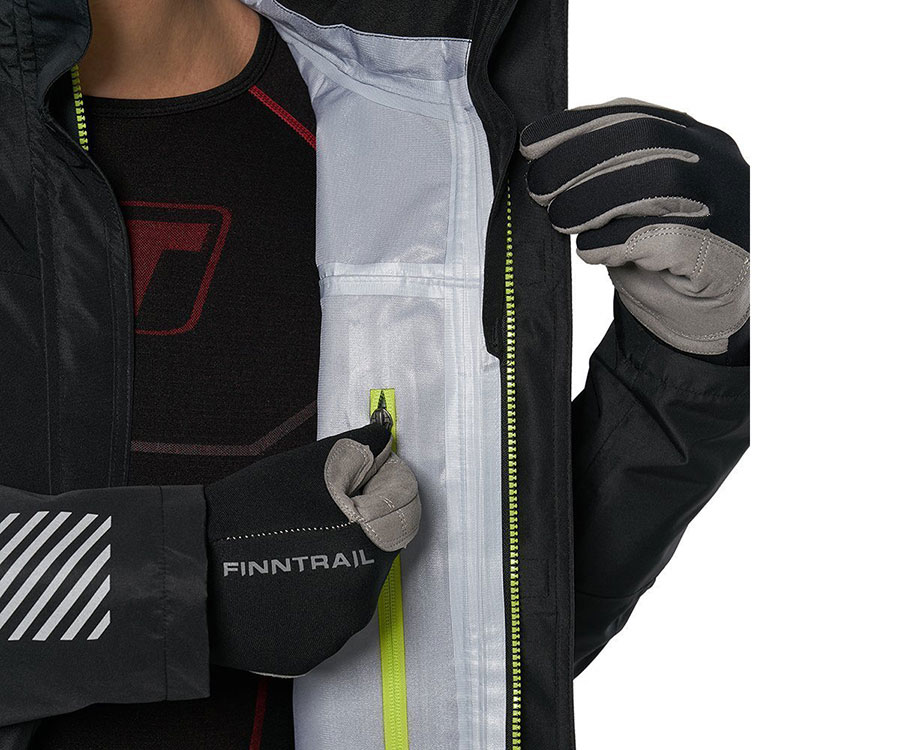 Стильна куртка з високим ступенем захисту від води та бруду. Куртка має чотири місткі кишені з вологозахисними блискавками: дві зовнішні з додатковими захисними клапанами та дві внутрішні для особистих речей. Куртка оснащена кріпленням для рації, світлоповертаючими елементами. Основна блискавка стійка до попадання бруду завдяки клапану з магнітною системою застібки. Капюшон забирається у комір для зручнішого використання. Регульовані внутрішні манжети захищають від затікання води до рукавів. Куртка пошита із тришарової тканини з мембраною «HARD-TEX». У цій моделі використані всі технології, що забезпечують тривалий термін служби та комфорт. Куртка оснащена еластичним ременем з логотипами Finntrail на замку YKK, коміром з флісовою обробкою, кулісою для підгонки по фігурі.