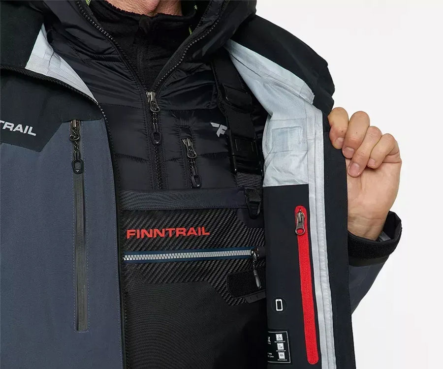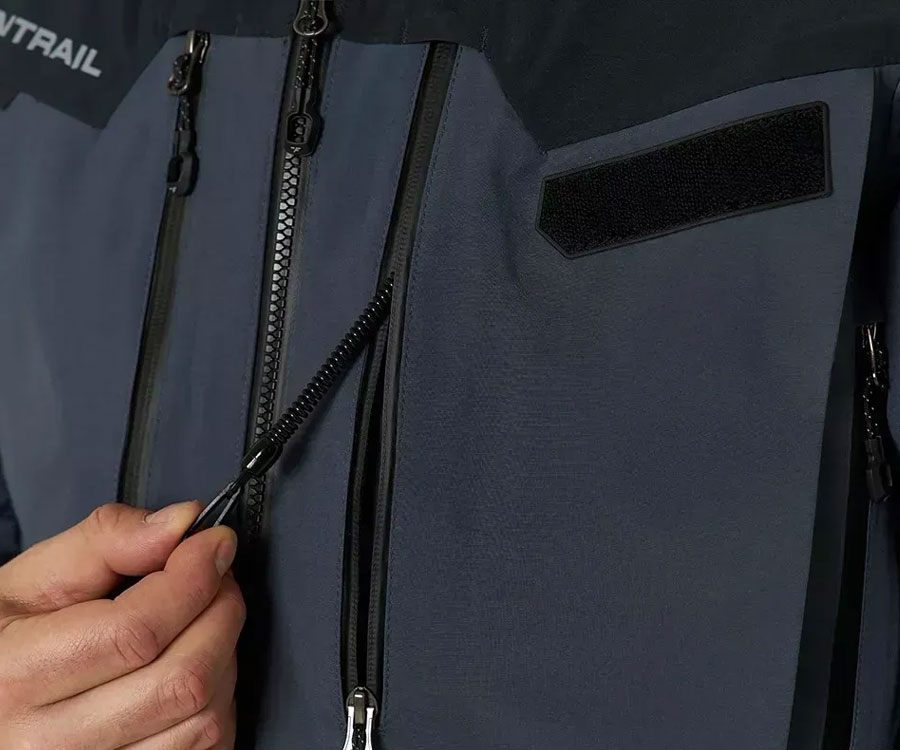 Ергономічний крій рукава забезпечує необмежений рух, а регульовані водонепроникні манжети з ремінцем на липучці не пропускають воду. Куртка містить дві зовнішні нагрудні кишені з водонепроникними блискавками YKK® і спеціальною вологопоглинаючою вставкою для окулярів, а також дві кишені для теплих рук на флісовій підкладці для додаткового комфорту. Дві внутрішні кишені — відділення на блискавці та глибока кишеня з еластичної сітки — забезпечують надійне зберігання.