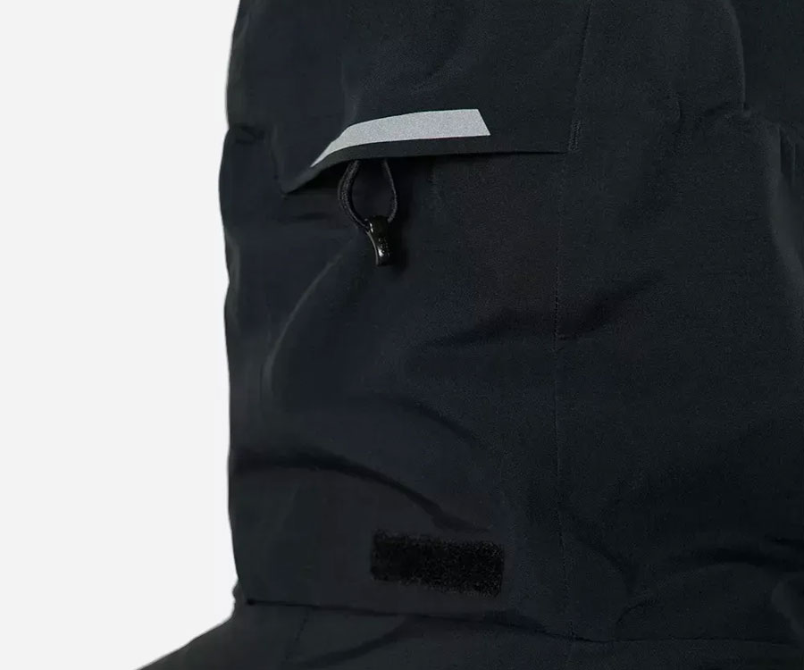 Ергономічний крій рукава забезпечує необмежений рух, а регульовані водонепроникні манжети з ремінцем на липучці не пропускають воду. Куртка містить дві зовнішні нагрудні кишені з водонепроникними блискавками YKK® і спеціальною вологопоглинаючою вставкою для окулярів, а також дві кишені для теплих рук на флісовій підкладці для додаткового комфорту. Дві внутрішні кишені — відділення на блискавці та глибока кишеня з еластичної сітки — забезпечують надійне зберігання.