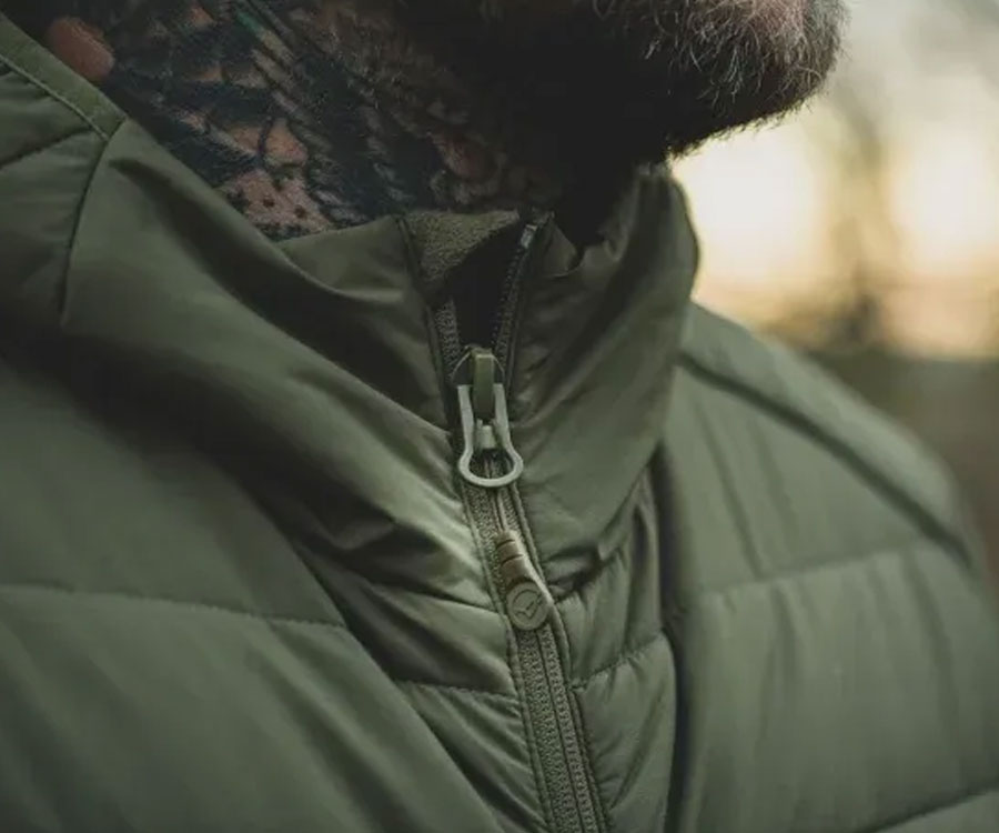 Куртка Korda Kore Thermolite Jacket також має високу водонепроникність завдяки зовнішньому матеріалу, що має гідростатику 3K і покриття DWR (міцне водовідштовхувальне). Крім водонепроникності, куртка відмінно захищає і від вітру за рахунок довшої спинки. Щільно прилеглий каптур, також допомагає запобігти потраплянню холодного повітря всередину куртки, а також зберігає вашу голову в теплі та сухості.