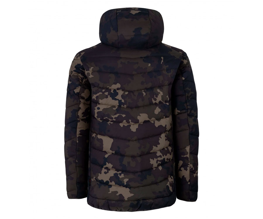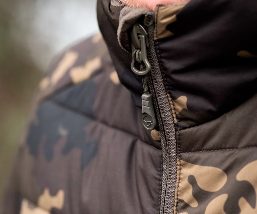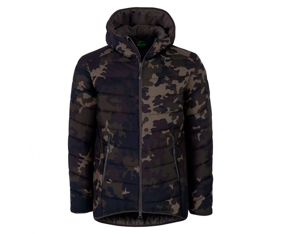 Korda Thermolite Jacket Dark Kamo – тепла куртка, яка зігріє вас у негоду. Неймовірно зручна в носінні й не обмежує руху завдяки високотехнологічним матеріалами, з яких її виготовлено. Термоізоляційний прошарок Thermolite, у якому використано технологію порожнистих волокон, забезпечує збереження максимальної кількості тепла за мінімально можливій вазі матеріалу. Теплові характеристики матеріалу Thermolite зберігаються навіть у вологому стані, що є великою перевагою в порівнянні із традиційними наповнювачами. Куртка Korda Thermolite Jacket Dark Kamo має високу водонепроникність завдяки зовнішньому матеріалу, який має гідростатику 3K і міцне водовідштовхувальне покриття DWR. Крім того, куртка відмінно захищає від вітру за рахунок більш довгої спинки. Капюшон, який щільно прилягає до голови, запобігає проникненню холодного повітря всередину куртки, а також утримує голову в теплі й сухості. Куртка Thermolite Jacket Dark Kamo має дві кишені з флісовою підкладкою, що закриваються на блискавки. У кишенях не тільки можна зберігати необхідні аксесуари, але й зігрівати руки. При виготовленні Korda Thermolite Jacket Dark Kamo використовуються високоякісні блискавки та фурнітура.