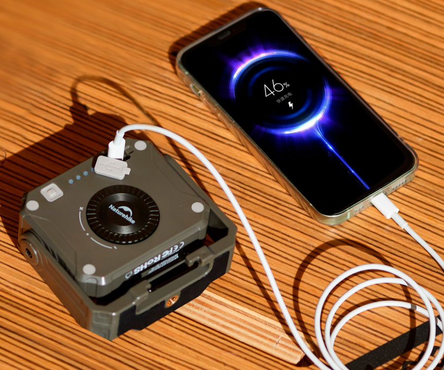 Ліхтар працює на акумуляторі 5200 мАг, який заряджається через порт USB Type-C. Зарядний порт приховано під захисною заглушкою в задній частині конструкції. Час роботи на одному заряді близько 48 годин. За допомогою пристрою також можна заряджати сторонні гаджети, використовуючи ліхтар як мініатюрний Power Bank. Герметичність конструкції – IPX4.