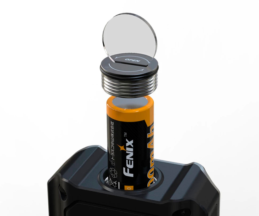 Для живлення рекомендується використовувати акумулятор Fenix ARB-L21-5000 V2.0, який забезпечує безперебійну роботу ліхтаря до 285 год на одному заряді незалежно від умов використання. Цей акумулятор входить до комплекту, як і зарядний кабель USB Type-C. Час повного заряджання займає близько 2,5 год.