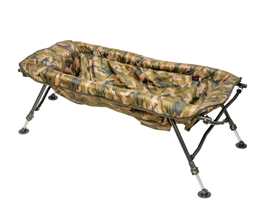 Camou Carp Cradle використовується в короповій риболовлі. Модель має каркас з алюмінієвого сплаву з телескопічними ногами. Регулювання довжини ніг у комплексі з шарнірними пластиковими упорами дозволяє надійно встановити мат на нерівній поверхні. Тканинний матрац з камуфляжним забарвленням кріпиться до рами за допомогою липучок, що суттєво полегшує процес чищення та обслуговування виробу. Мат короповий CarpZoom Camou Carp Cradle належить до числа дуже корисних аксесуарів, завдяки яким забезпечується безпека трофея при звільненні від гачка і при інших маніпуляціях перед відпусканням.
