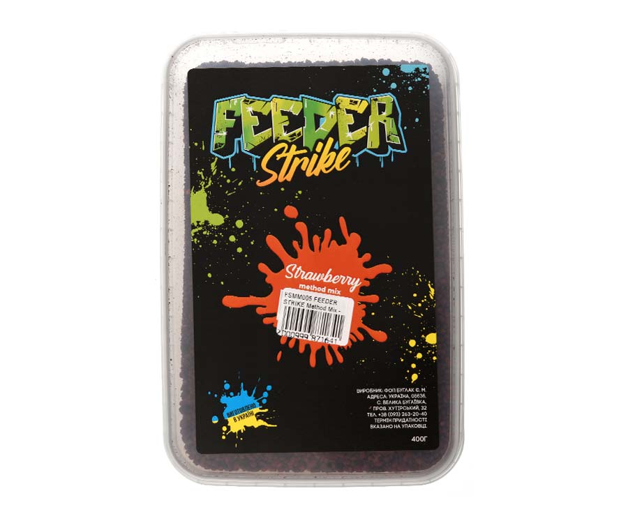 Feeder Strike Method Mix Mix Strawberry – це той метод мікс, з яким ваша риболовля буде результативною та цікавою. Якщо місце ловлі вибрано правильно – риба обов'язково ним зацікавиться. Завдяки великій кількості поживних складових і привабливих атрактантів суміш швидко створює привабливу хмаринку поживної каламуті в точці ловлі. Найкращим чином мікс підійде для швидкого приваблення та ловлі коропа, амура, карася та іншої великої риби! Ідеально підходить для ловлі класичним фідером, флет-фідером і Freestyle method feeder.