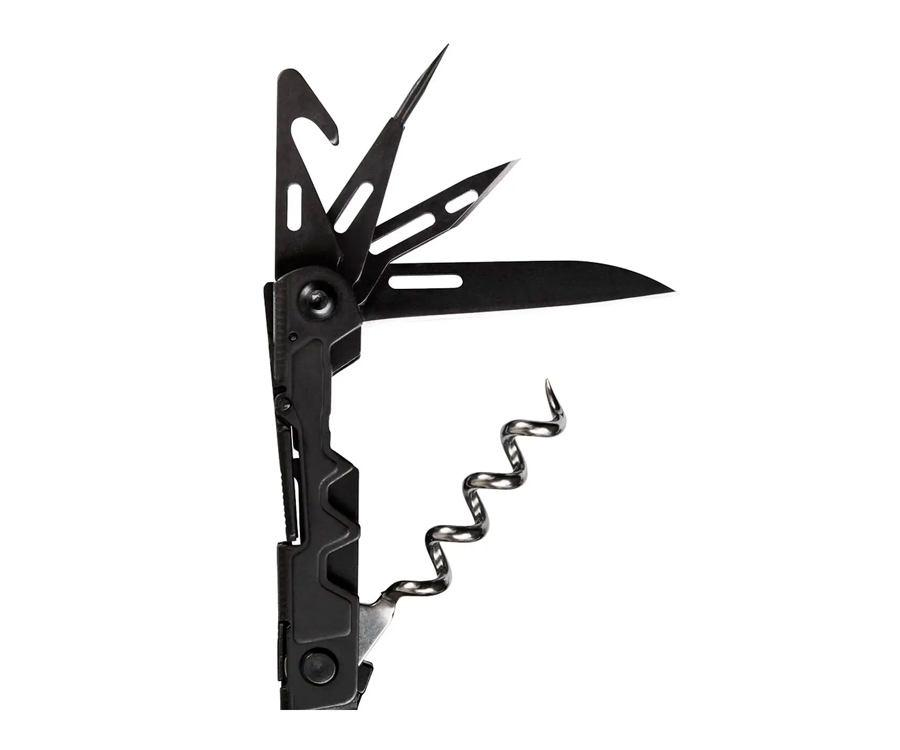 Інструменти: шило, відкривачка пляшок, консервний ніж, пробковий гвинт з важільним механізмом, захват, різак жорсткого дроту, плоскогубці, викрутка Філіпс, транспортир, лінійка, ножиці, маленька плоска викрутка, лезо, біт-викрутка, викрутка ювелірна, обрізувач лінії, різак м'якого дроту