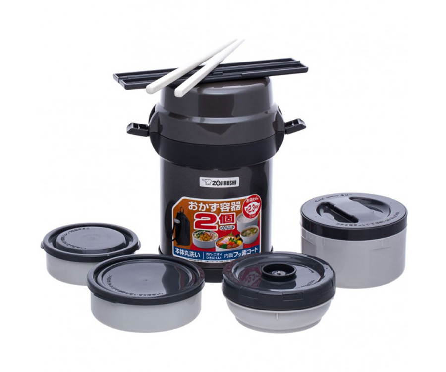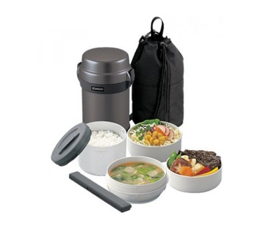 Набір для ланчу Zojirushi SL-JAF14HG – функціональний набір контейнерів для зберігання їжі. Набір складається з чотирьох контейнерів та металевої колби. Колба виготовлена із міцної сталі зменшеної товщини, при цьому тривалий час зберігає оптимальну температуру напоїв та страв. Між кришкою та основою термоколби вакуумний зазор становить лише 1 мм. Контейнери виготовлені із високоякісного пластику. Відмінно підходять як для гарячих, так холодних страв. Кришки герметично закриваються, що виключає протікання та сприяє більш якісній термоізоляції. Термоконтейнери підходять для використання в мікрохвильовій печі. Ви можете дістати страви з холодильника, розігріти і помістити в металеву колбу. У комплект входить ремінь, що відстібається, або зручна сумка чохол, яка полегшує транспортування термоса і пенал з паличками для їжі. Набір відмінно підійде для виїздів на природу, тривалу дорогу або для дачних поїздок.