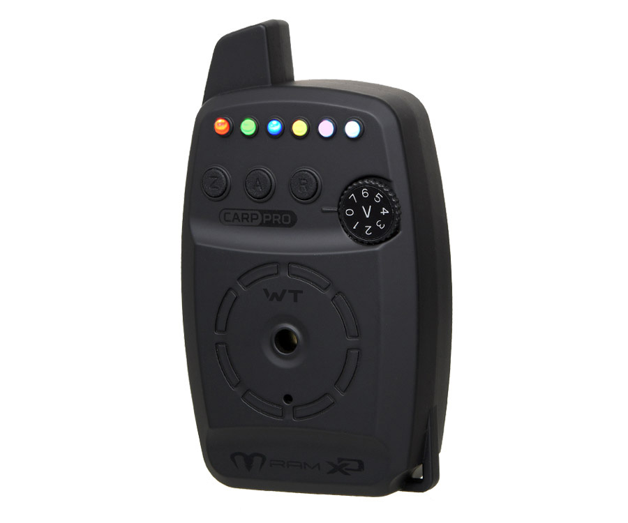 До ресивера можна підключити до 6 сигналізаторів клювання Carp Pro RAM XD. Дальність роботи ресивера: 220 метрів. Включення здійснюється обертанням коліщатка-регулятора. Цим же коліщатком регулюється рівень звуку. Доступно 5 рівнів + тихий режим. Ресивер автоматично встановлює тон, вибраний на сигналізаторі. На передній панелі ресивера розміщено відповідні кожному із сигналізаторів світлодіоди-індикатори клювання Multi-Color. Функція «Пам'ять» допоможе дізнатися, який із сигналізаторів спрацював останнім у випадку, коли ви пропустили клювання. Вибраний на сигналізаторі колір автоматично встановлюється на ресивері. Індикація клювання від берега та в берег відбувається за допомогою різних звукових сигналів, а відповідний сигналізатору індикатор блимає. Там же є 3 кнопки, під час натискання на які коліщатком можна провести регулювання режимів «Вібро», «Тихий», «Синхронізація» тощо. Передбачено функції «Стирання кодів сигналізаторів», попередження про недостатній заряд батареї тощо.
