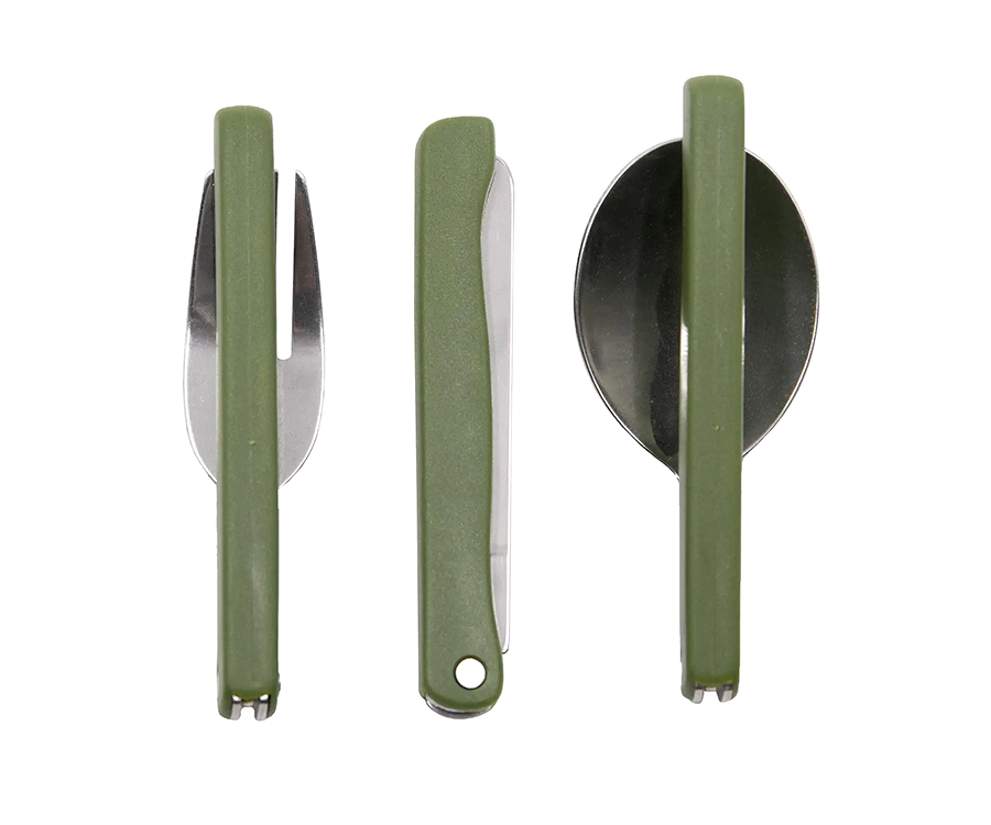 Набір складних столових приладів Tramp TRC-049 складається з: складаної ложки, виделки та ножа.
