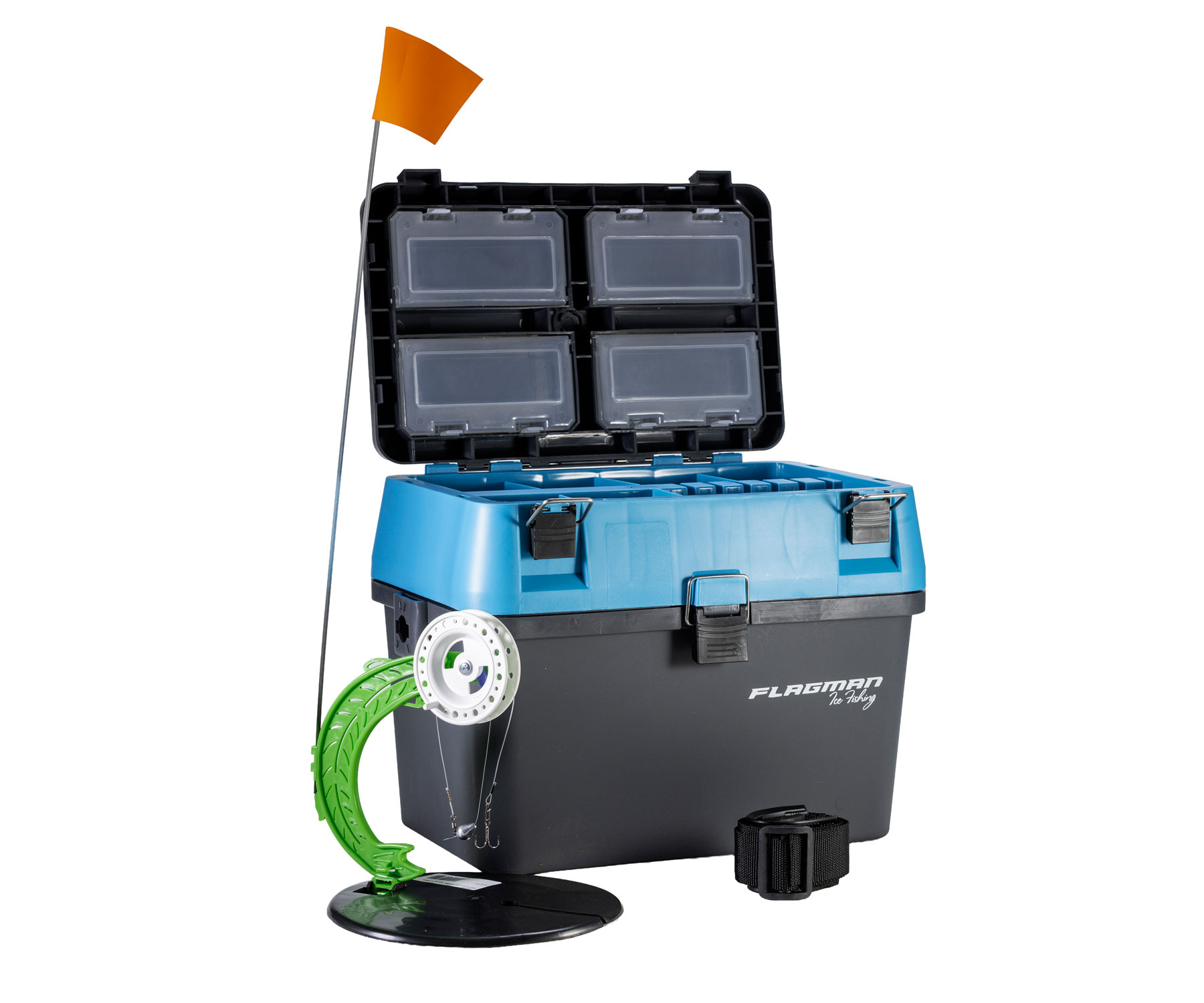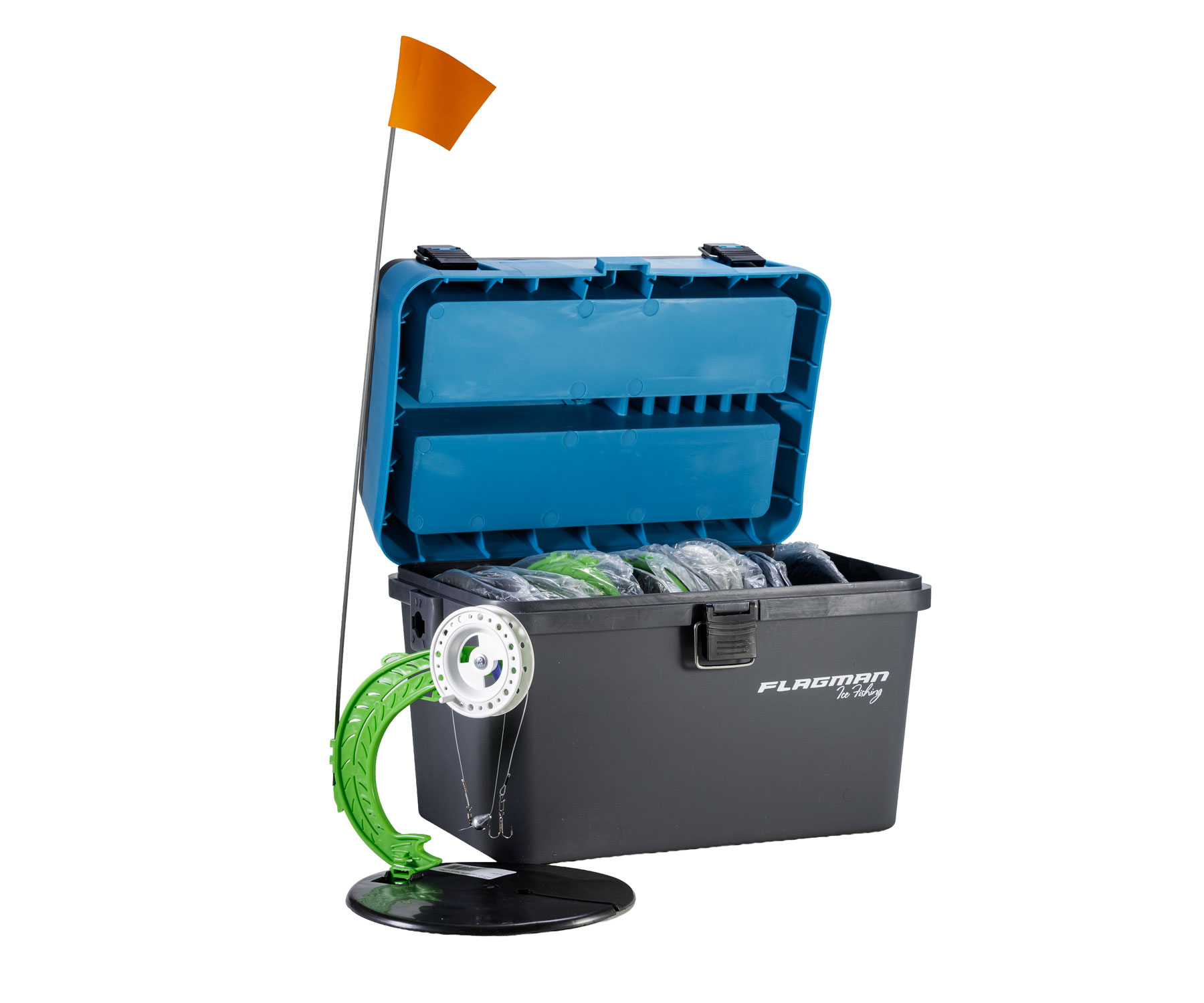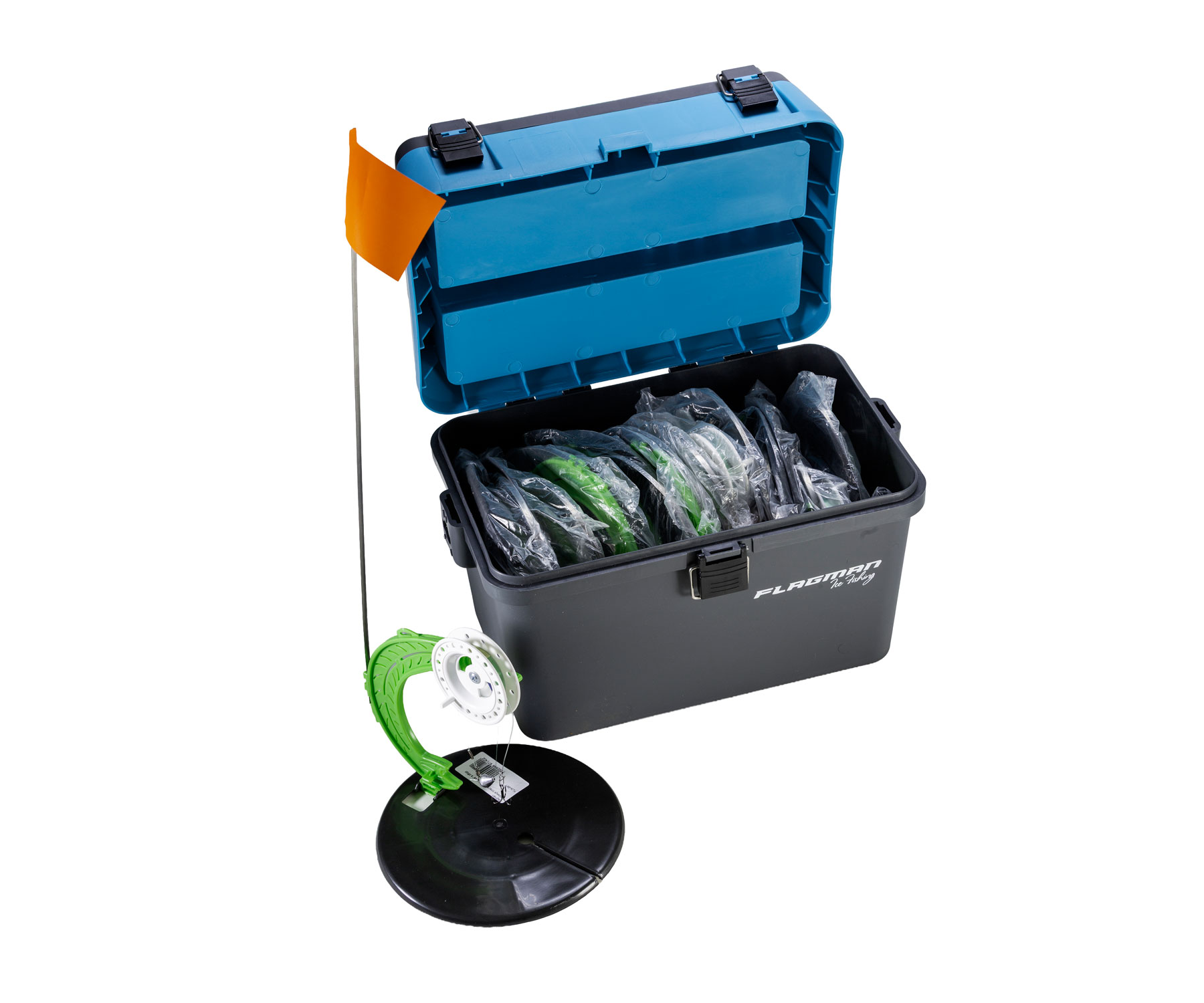 Компактний та ефективний набір із 10 повністю оснащених зимових жерлиць і рибальського ящика Flagman (F30700) – це готове рішення «під ключ» для успішної підлідної ловлі хижої риби. Комплект містить 10 якісно обладнаних жерлиць, кожну з яких оснащено котушкою із жилкою, грузилом, повідцем із флюорокарбону 0,55 мм, трійником і яскравим прапорцем – усе, що потрібно для швидкого виходу на лід і початку риболовлі. Основи жерлиць виготовлено з морозостійкого й міцного пластику, стійкого до навантажень і низьких температур. Конструкція жерлиць забезпечує їхню надійну фіксацію на кризі та продуктивну риболовлю в різних погодних умовах. Жерлиці компактно складаються в рибальський ящик, де їх зручно зберігати і транспортувати. Сам риболовний ящик Flagman спеціально розроблено для зимової риболовлі та виготовлено з пружного ударостійкого пластику, що не втрачає своїх властивостей за низьких температур. Згладжені кути забезпечують травмобезпеку на риболовлі. Ящик має два відділення. Нижнє, основне, слугує для транспортування жерлиць. Менше, верхнє відділення, закривається окремою кришкою та має знімні перегородки, воно призначене для транспортування додаткового обладнання та аксесуарів. Кришку обладнано чотирма вбудованими боксами, що закриваються окремими прозорими кришками, де зручно зберігати грузила, гачки, запасні повідці та інші комплектуючі оснасток. Для перенесення ящика використовується регульований наплічний ремінь. Розміри ящика: 37x23x29 см.