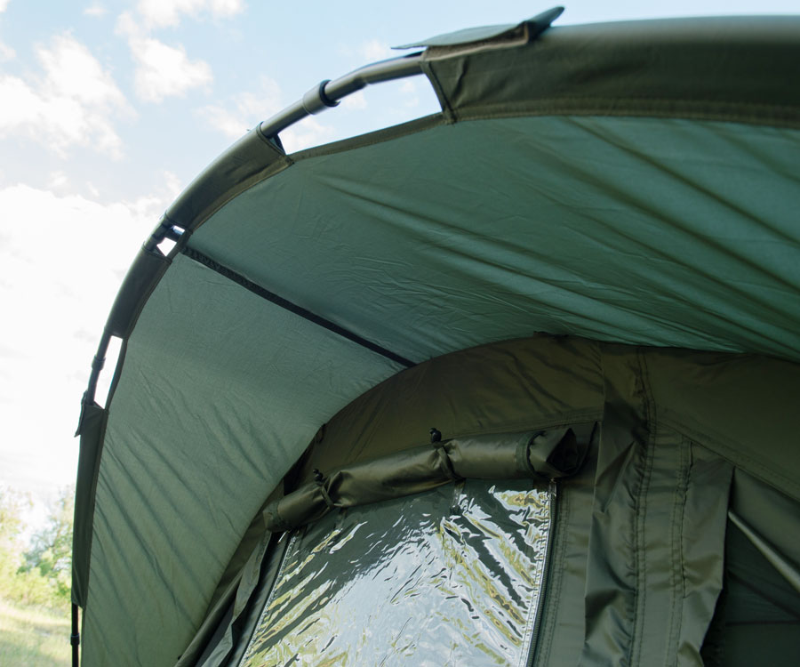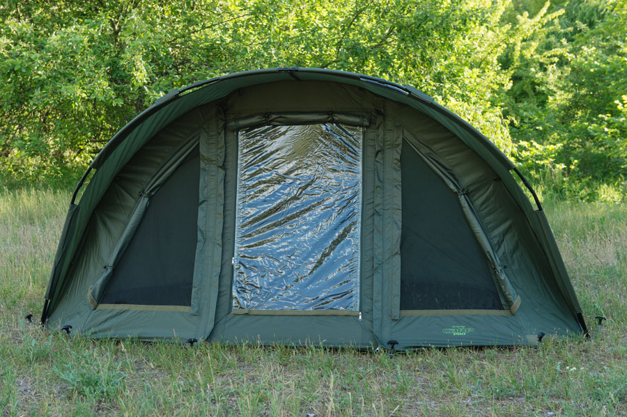 Carp Pro Bivvies CPB1111– одномісний намет, габарити якого дозволяють використовувати його для тривалих риболовних сесій. При цьому він досить компактний для встановлення на дерев'яному помості або на березі, де немає можливості встановити великий намет або шатро. Передню і задню стінки, а також двері оснащено вікнами, які захищені протимоскітною сіткою. Ці вікна із зовнішнього боку закриваються клапанами з тканини. Міцна рама забезпечує відмінну вітростійкість, а тканина з високими показниками водонепроникності – надійний захист від опадів. Додатковим захистом від опадів слугує козирок. Міцна водонепроникна підлога приєднується до намету окремо. У комплекті потужні кілочки. Намет Carp Pro CPB1111 має безліч корисних функцій, серед яких можливість закріплення вудлищ за допомогою спеціально передбачених липучок. Постачається в міцному чохлі з тканини.