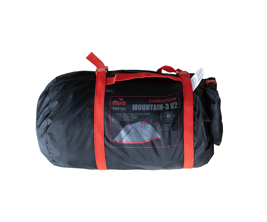 Експедиційний тримісний намет Tramp Mountain 3 V2 TRT-023 – тридугова модель конструкції «напівсфера» з просторим тамбуром, 2 входами і сніговою спідницею по периметру зовнішнього тенту. Чудові характеристики матеріалів, надійна конструкція, перевірена в різних умовах, міцні алюмінієві дуги – ось те, що потрібно справжньому мандрівникові! Призначення: риболовля, полювання, піший і гірський туризм, альпінізм і зимові походи. Період використання: весна-літо-осінь-зима.