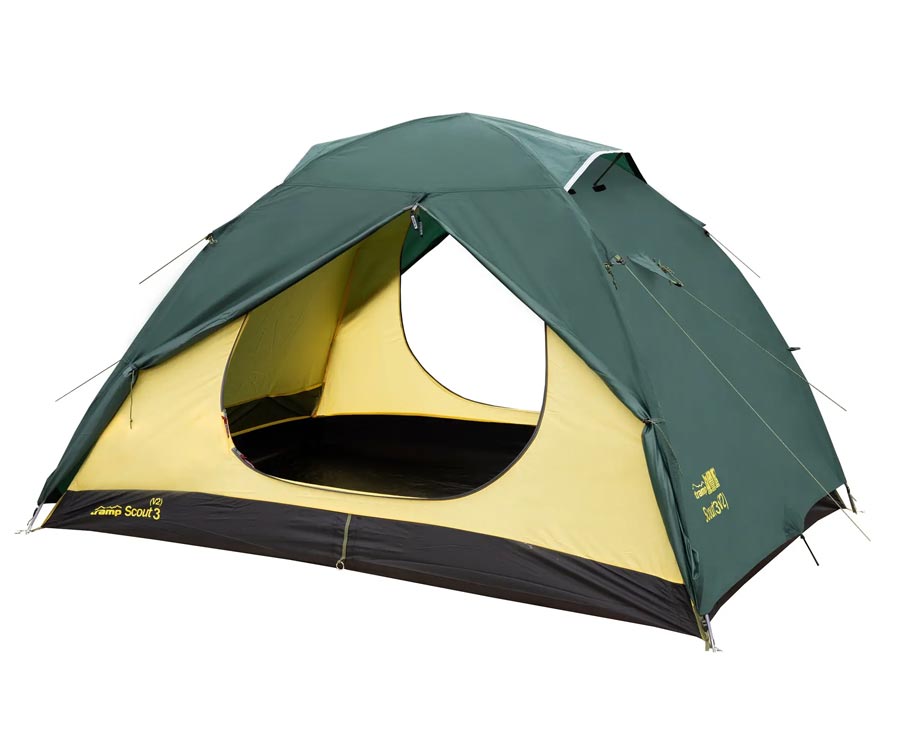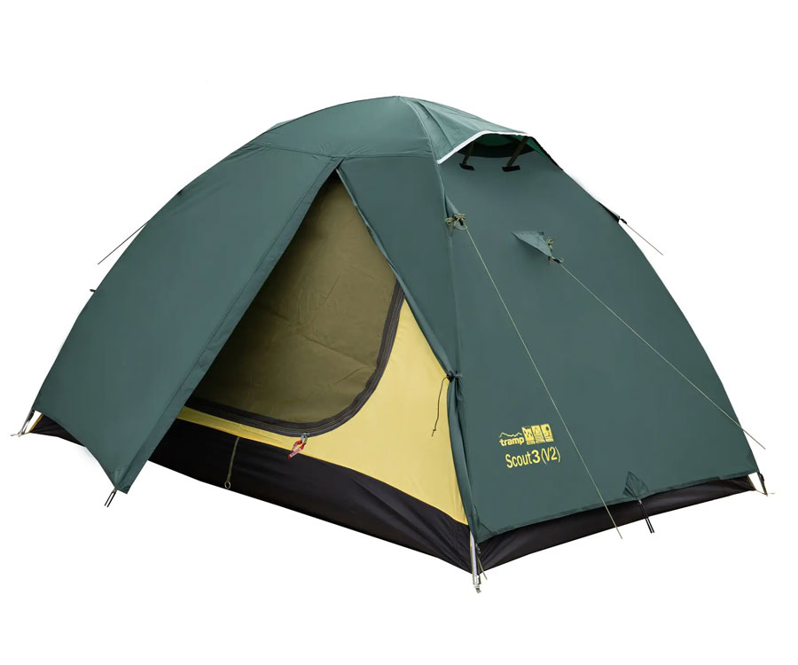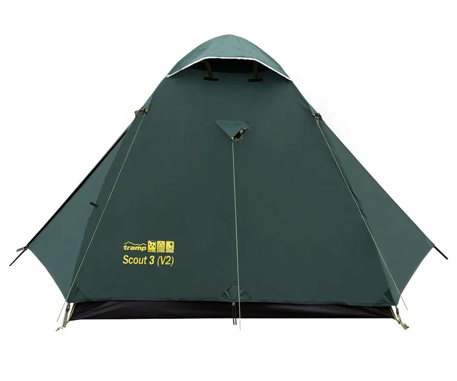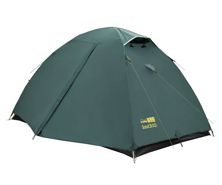 Універсальний тримісний туристичний намет Tramp Scout 3 (V2) UTRT-056 – проста в установці, добре вентильована модель із внутрішнім розташуванням каркаса, двома входами і двома тамбурами. Призначення: піший і гірський туризм, риболовля, полювання, відпочинок на природі. Період використання: весна, літо, осінь.