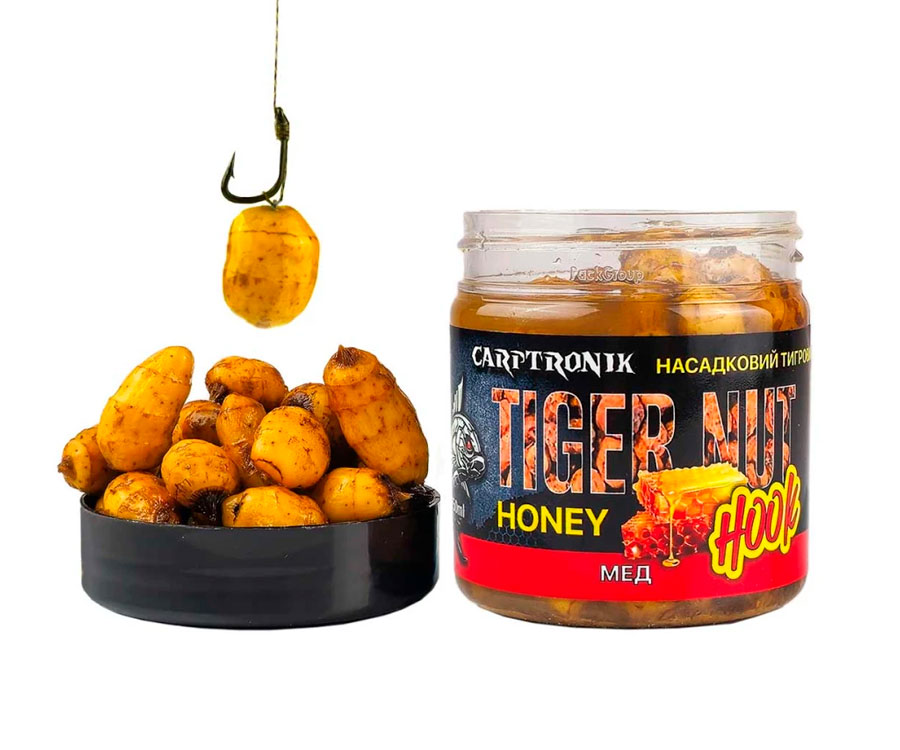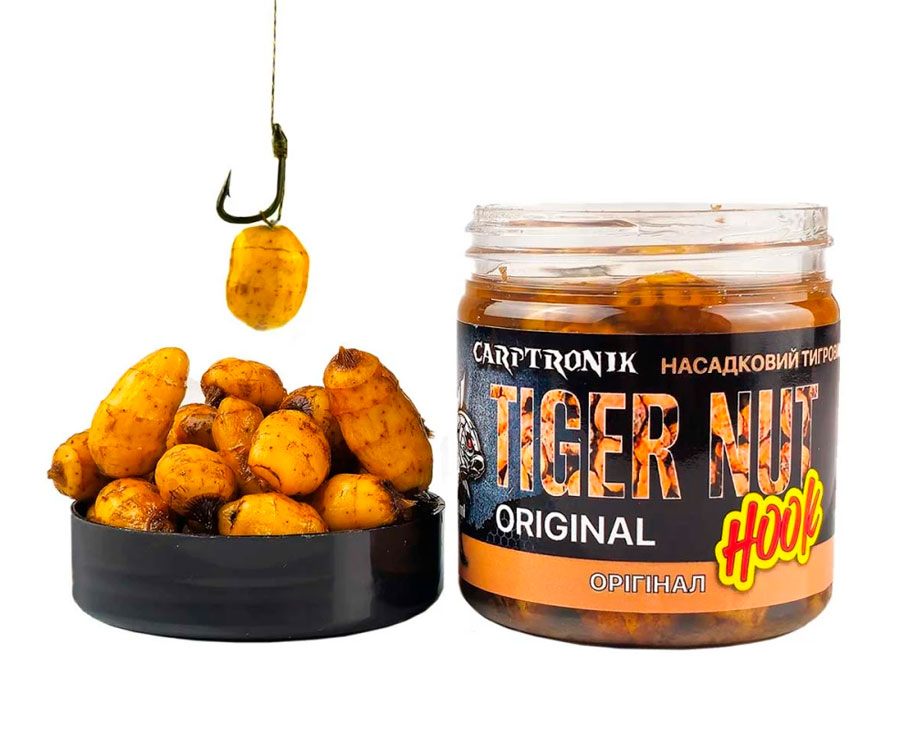 Тигровий Горіх насадковий XXL — це справжні ласощі та бажана насадка для коропа або амура. Насадковий тигровий горіх відрізняється великим розміром, середній діаметр становить 12мм, а в довжину може досягати 23-25мм. Як насадка широко застосовується як у чистому вигляді, так і в комбінації з EVA насадкою або Поп-апом для створення збалансованої презентацій коли гачок лежить на дні, а насадка ширяє над ним. Ще однією перевагою застосування як насадка натурального тигрового горіха є його природний вигляд, він не насторожує трофейного коропа або амура провокуючи на сміливе і впевнене клювання.