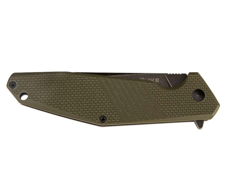 Ніж Ruike D191-G, універсальний для комфортного використання, інструмент виготовлений із зносостійких матеріалів, що витримують високі навантаження. Клинок та сталева сторона рукояті оброблені методом black stonewash (галтівка). В результаті метал набув легкої матовості, що приховує відбитки пальців. У виробництві клинка застосована нержавіюча сталь 8Cr13MoV, яка характеризується відмінним утриманням заточування, простотою в обробці та високою агресивністю різу, особливо за матеріалами малої та середньої щільності.