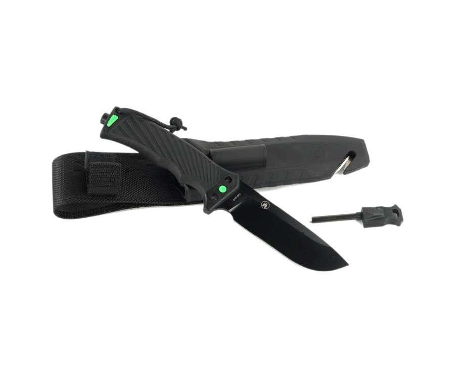 Довжина клинка даного інструменту становить 113 міліметрів. Він виплавляється із загартованої сталі 8Cr13, яка не схильна до корозії. Даний тип металу чудово тримає заводське заточування і має хорошу "витримку" при механічних навантаженнях. Весь меч має чорне забарвлення, яке виступає не тільки, як дизайнерське рішення, але і практичне: не відображає промені світла і на ньому не видно дрібні подряпини.