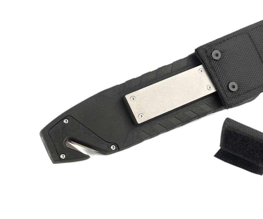 Цей ніж не є складним, а отже ніж може витримувати великі механічні навантаження. Рукоятка у ножа має ергономічну форму, завдяки якій інструмент можна зручно взяти не лише прямим, а й зворотним хватом. Матеріалом ручки став міцний ABS пластик, який не схильний до впливу агресивних середовищ і прослужить дуже довго.