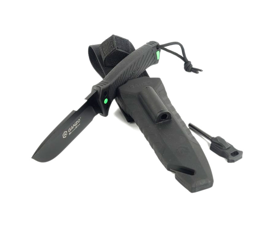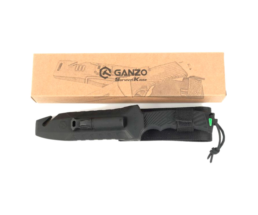 Фіксована модель Ganzo G8012V2 по суті це оновлена версія улюбленого ножа для виживання від компанії Ganzo. Продуманий дизайн та ергономіка дозволяє розширити сферу застосування від звичайного туристичного ножа до моделі для спеціального призначення в екстремальних умовах. Адже в комплекті з ним йде практичний чохол, в якому можна знайти кресало для розведення багаття, пластину з алмазним напиленням, яку потрібно використовувати для заточування леза, а також чохол вбудований стропоріз. Крім того, на кінці ручки знаходиться склобій. Бонусом тепер йде темляк на руку з паракорду для комфортного утримання моделі в руках.