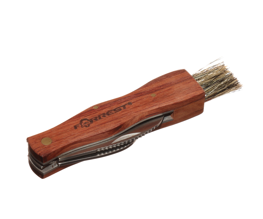 Ніж складаний грибний Forrest G321101 - незамінний інструмент на "тихому полюванні". Зручна дерев'яна ручка чудово лягає в руку, а продуманий функціональний набір нержавіючих лез, що складається зі спеціального грибного ножа, штопора, консервного ножа та відкривашки для пива, задовольнить будь-які потреби навіть найдосвідченішого грибника. Так, і щіточка для очищення грибів від сміття та піску – куди ж без неї! Все продумано, все раціонально та просто!