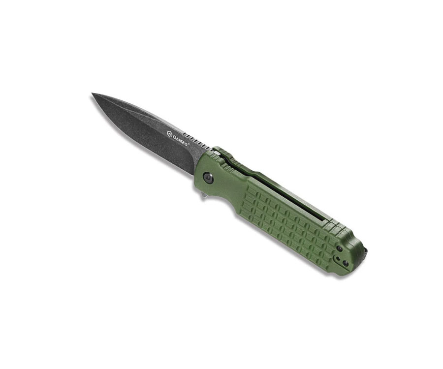 Складана модель Ganzo G627 — це універсальний ніж, який можна непомітно носити в кишені одягу завдяки двопозиційній кліпсі глибокої посадки. Інструмент також можна застосовувати в польових умовах: на риболовлі, пікніку або під час туристичної подорожі, де від наявності гострого ножа залежить комфорт користувача. Ніж оснащений клинком з профілем drop point, який характеризується відмінними різальними властивостями та зручністю роботи на укол. Довжина леза досягає 88 мм, а товщина в обуху, що дорівнює 3.2 мм, наділяє клинок зносостійкістю, яка важлива під час різання особливо щільних матеріалів. Клинок виготовлений зі сталі 8CR14 з чорним покриттям. Метал демонструє високу опірність до корозії, тому не вимагає спеціального догляду. Твердість марки знаходиться на рівні ±58 HRC, витримуючи баланс між міцністю та легкістю у заточуванні, яке можна виконати в домашніх умовах з використанням звичайних абразивів. Модель Ganzo G627 оснащена сталевим плавцем фліпера. У складеному інструменті цей елемент сприяє швидкому відкриванню конструкції — для цього потрібно натиснути на фліпер вказівним пальцем. У відкритому ножі плавець захищає пальці від випадкового зісковзування на лезо. За безпеку експлуатації відповідає замок liner lock, в основі якого знаходиться пружна пластина. Запірний механізм простий у використанні та стійкий до підвищених навантажень, тому широко застосовується брендом Ganzo у виробництві кишенькових ножів. Матеріал руківʼя — поліпропілен (PP), який не боїться перепадів температур та впливу різних видів хімічних сполук та речовин, включно з кислотами та розчинниками. Рельєфна поверхня руківʼя дозволяє міцно утримувати інструмент під час використання. Цьому також сприяє виїмка під великий палець.