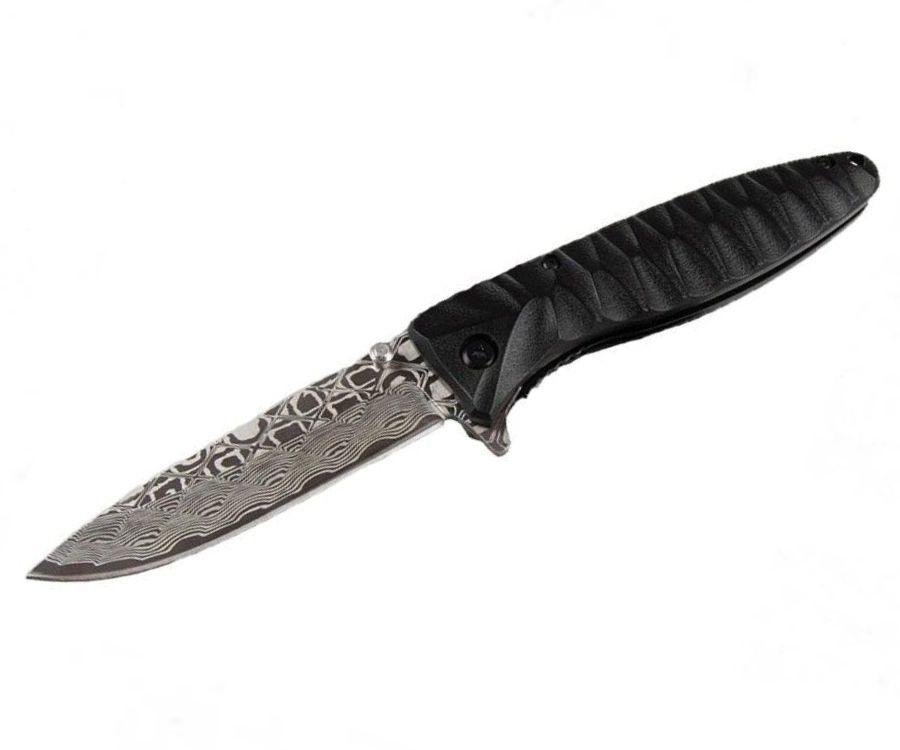 Лезо ножа має травлення та гладко заточене, виготовлене з нержавіючої сталі 440 з рівнем гарту порядку 55 HRC. Не відбликує. Довжина леза становить – 8.8 см. Товщина – 3 мм.