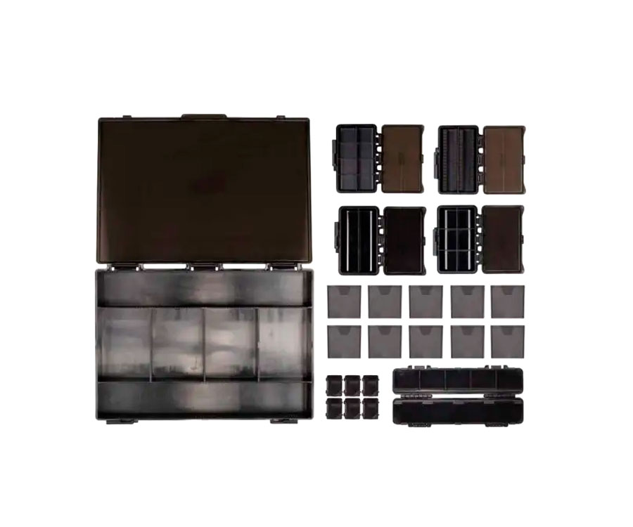 Коробки Nash BoxLogic Large Tackle Box Loaded. Оновлені коробки для снастей Box Logic — це класична система зберігання дрібнички. Тонована кришка. Ковзаючі передні замки. На кришці лінійка для в'язки повідців. Три основні відділення. Одне відділення повної ширини. В комплект Nash Large Tackle Box Loaded входить: 10шт маленьких роздільників. 1шт Slim Box 8 — коробка для дрібнички з 8 відділеннями. 1шт Shallow Box 6 — коробка для дрібнички з 6 відділеннями. 1шт Shallow Box 2 — коробка для дрібнички з 2 відділеннями. 1шт Hook Box Small — коробка для гачків. 1шт Needle Box — коробка для зберігання голок. 6шт Linkers Box — маленькі коробочки для гачків, колечок, вертлюгів і т.д.