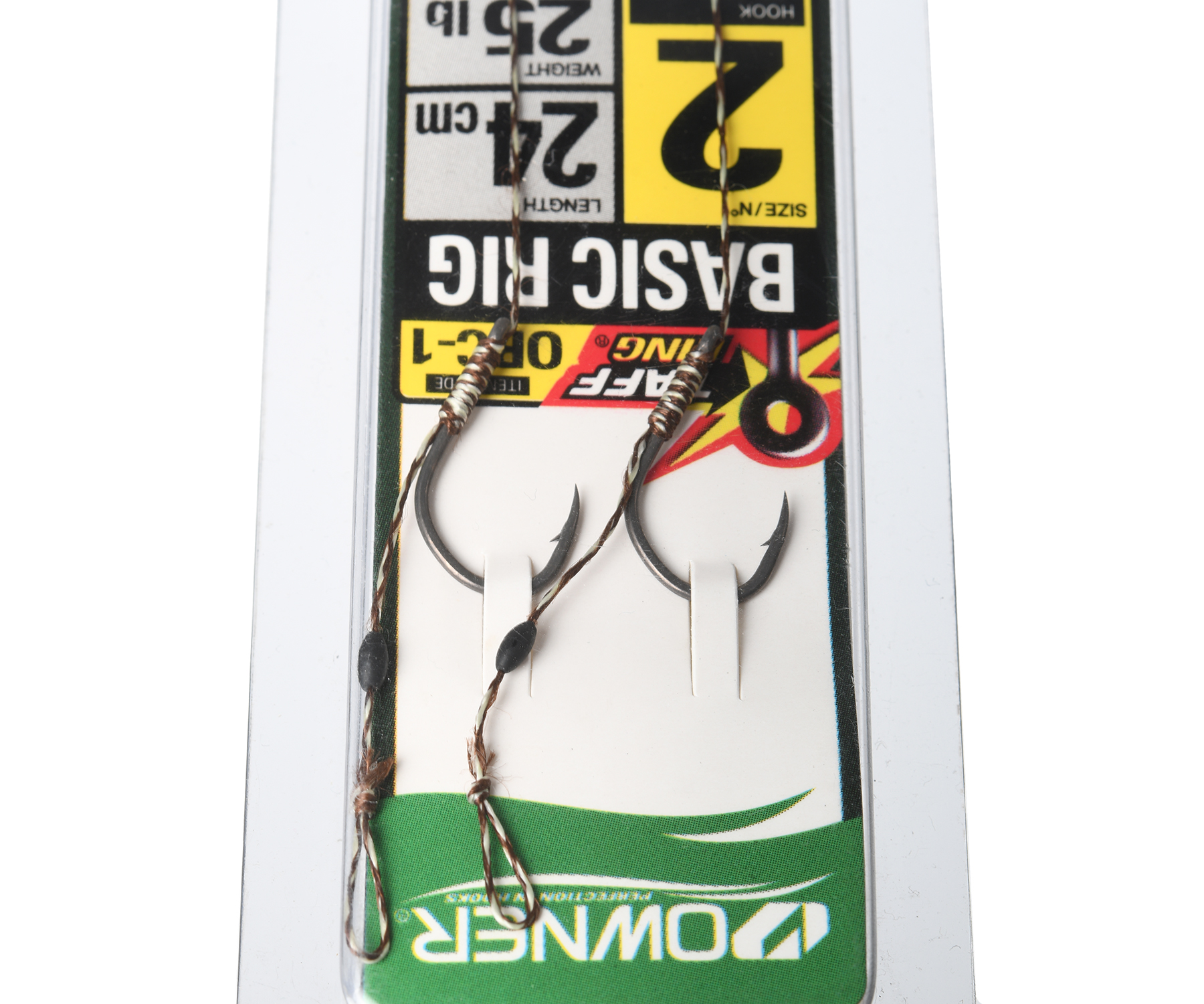 Owner ORC-1 Basic Rig – універсальна серія коропових повідців, що належать до так званих «волосяних» оснасток. Повідці цієї серії підходять для найрізноманітніших умов ловлі. На їхню універсальність і «базовість» указує й сама назва серії – Basic Rig. Один кінець м'якого плетеного повідцевого матеріалу прив'язано до високоміцного гачка Owner 53275 CT-5 Carp Taff із суцільним кілечком taff ring, другий – до вертлюжка. На волосі розміщено стопор для запобігання сповзання насадки до гачка. Волос досить довгий, що дозволяє використовувати у ролі насадки як ланцюжок зернин кукурудзи, так і комбінацію бойлів, що мають різні запахи й відрізняються ступенем плавучості. Довжина повідця – 24 см, що теж, певною мірою, базове значення.