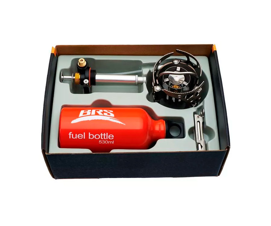Мультипаливний пальник BRS-8 — універсальне рішення для кемпінгу або походу. Однаково добре працює як взимку, так і у високих горах. Пальник може працювати як з газовим балоном (різьбовим), так і з рідким пальним (комплектується пляшкою для пального, з кришкою). Також може працювати з цанговими газовими балонами при підключенні через перехідник (цанга-різьба) (не комплектується). Має попередній прогрів газу, що особливо важливо для користування у холодну погоду та на висотах. Верхня частина насосу для роботи з рідким пальним виготовлена з посиленого нейлону. З пальником можна використовувати різноманітний посуд, який розташовується на розкладні підпірки. Ніжки з резиновими накладками що запобігають ковзанню пальника по поверхні та забезпечують стабільність конструкції при навантаженні.
